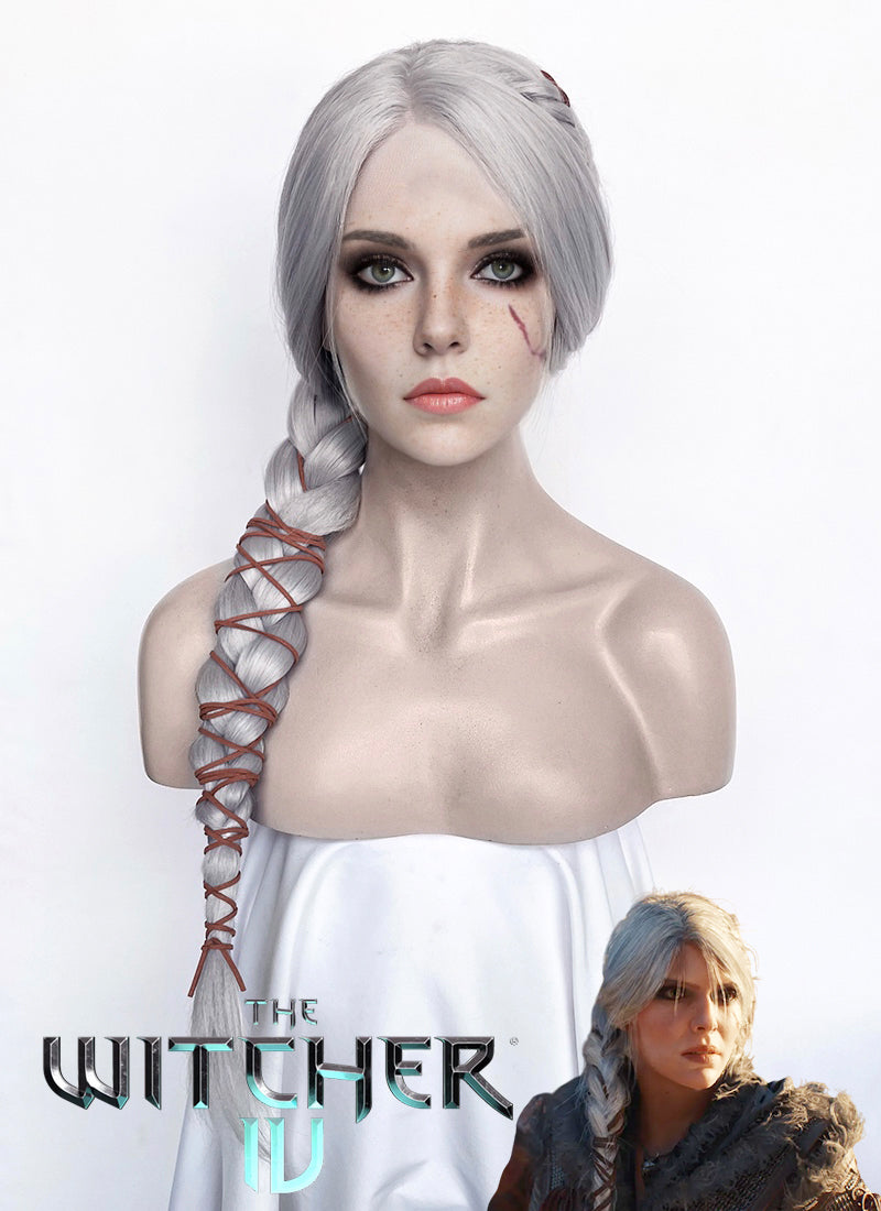 The Witcher IV Ciri Yaki Silver Grey Braided Lace Front Synthetic Wig LF2179
