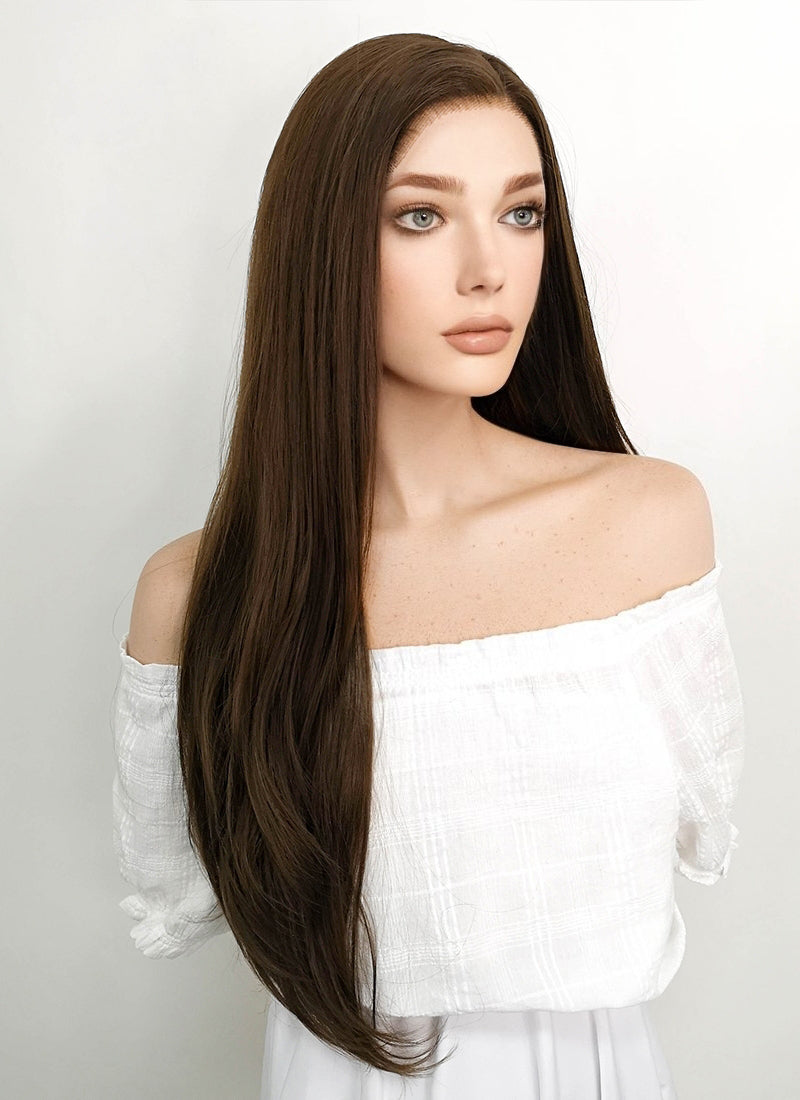 Long Straight Brown Lace Front Synthetic Hair Wig LF006