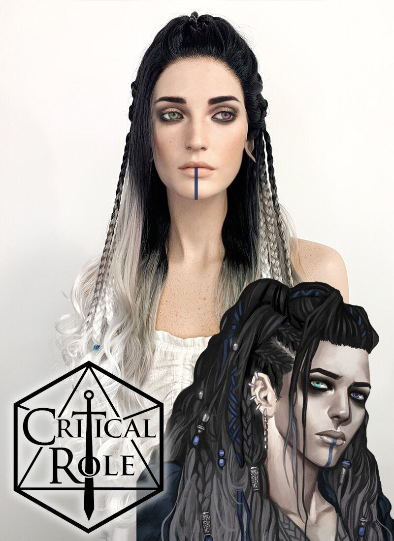 Critical Role Yasha Nydoorin Black Grey White Ombre Braided Lace Front Synthetic Wig LF2121