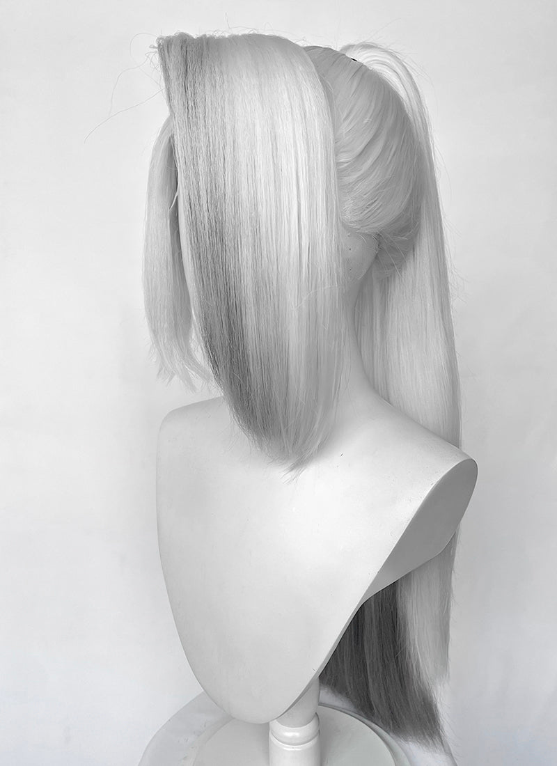 Hazbin Hotel Vaggi White With Dark Grey Straight Lace Front Synthetic Wig LF6166