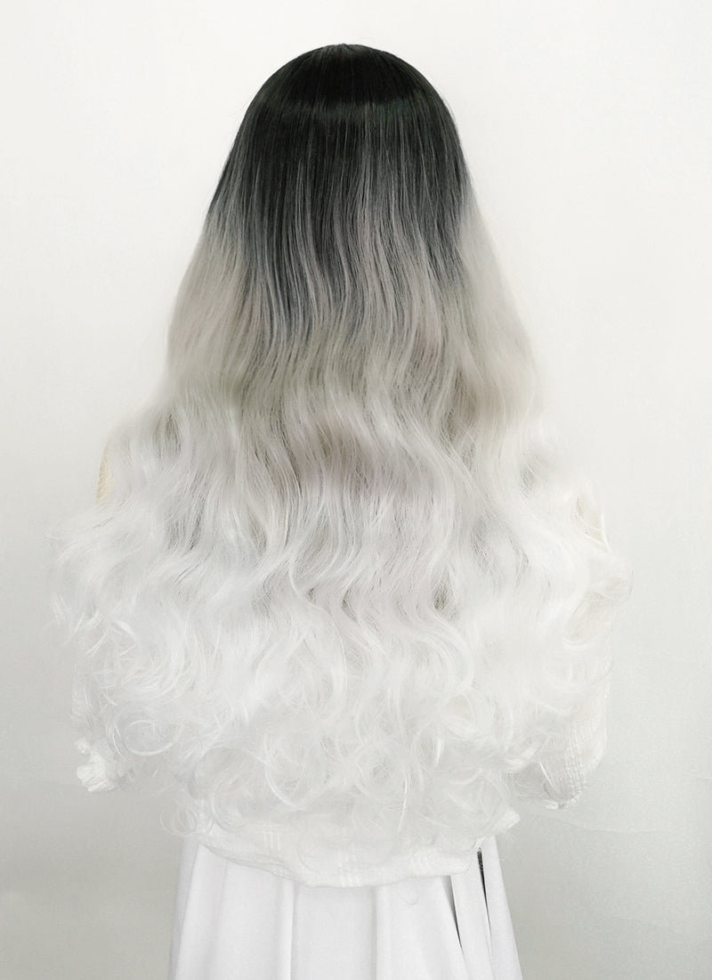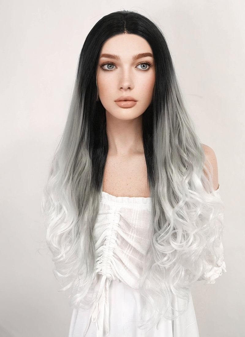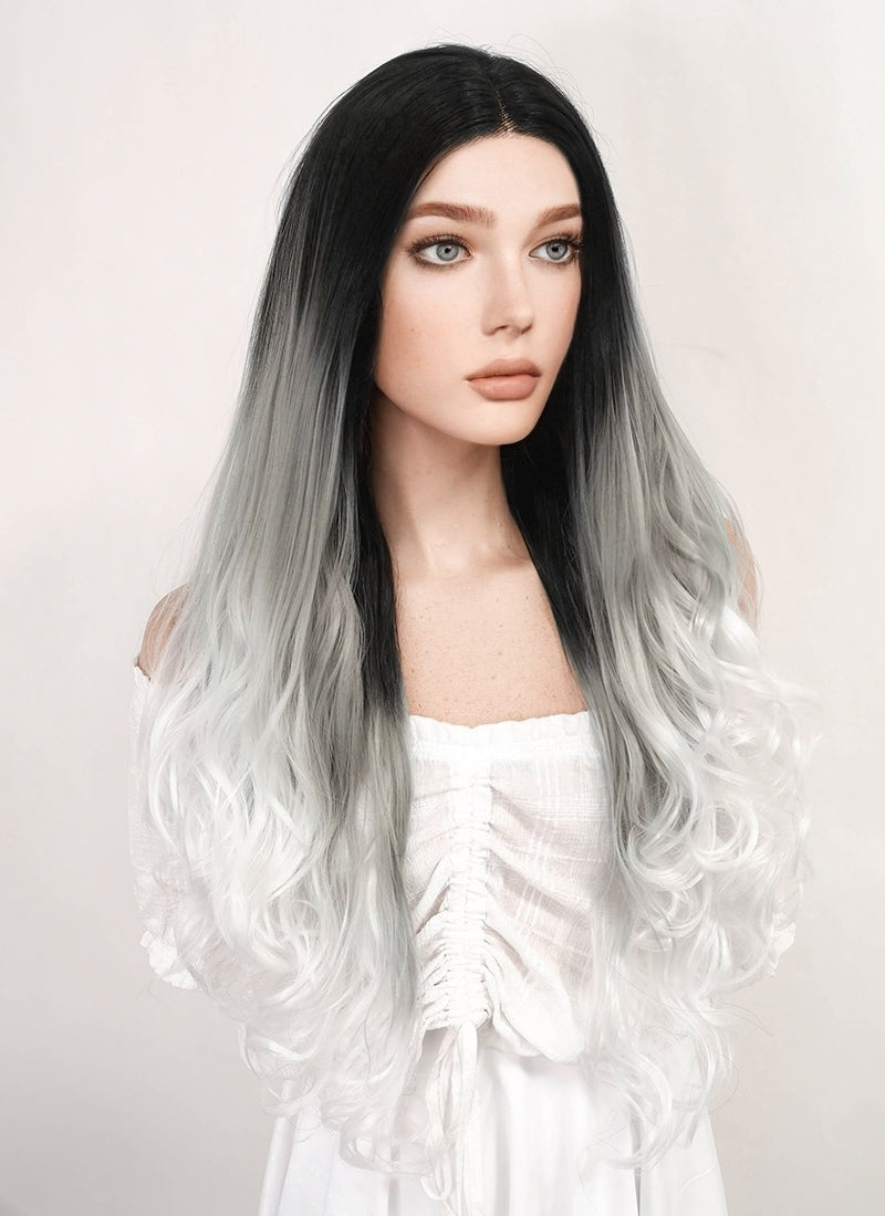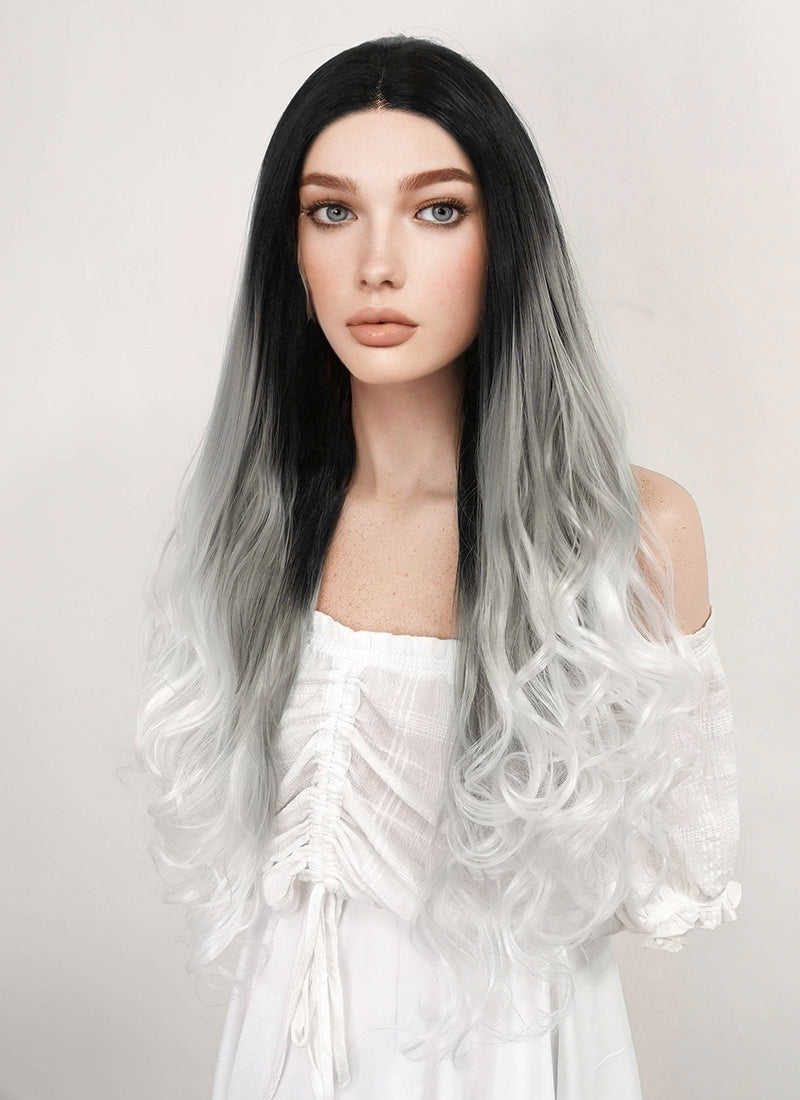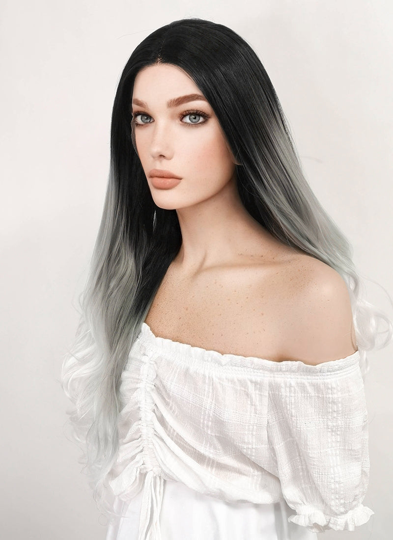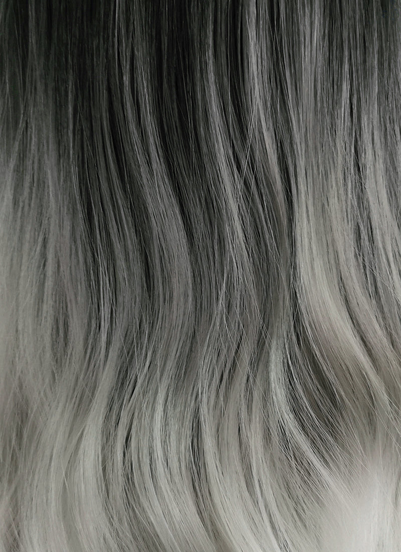 Long Wavy Black Grey White Mixed Lace Front Synthetic Hair Wig LF781