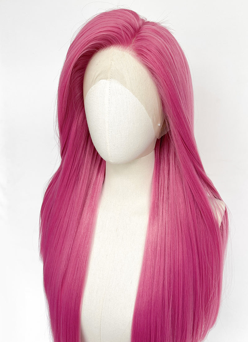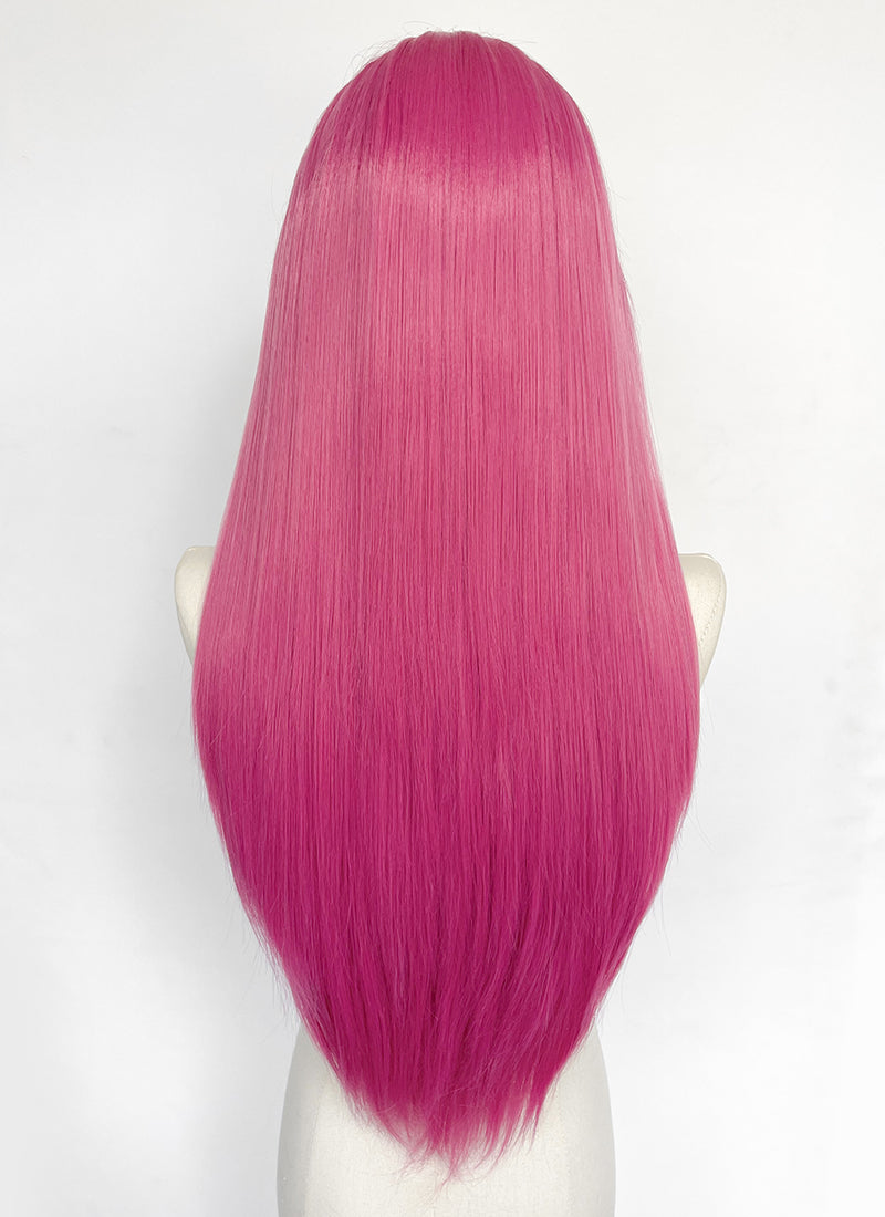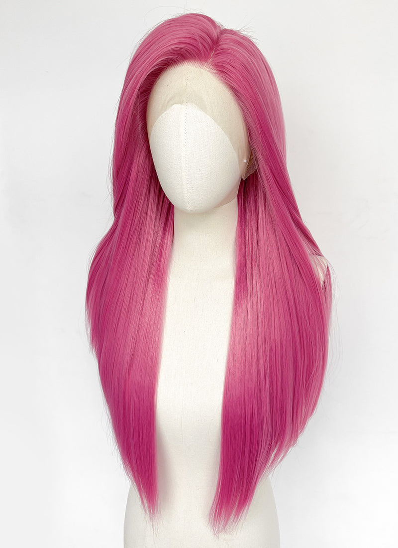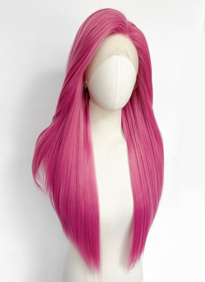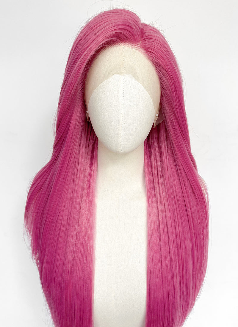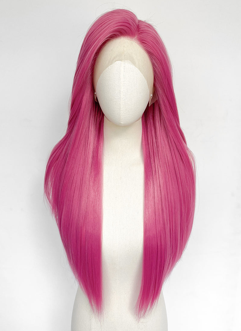 Long Straight Yaki Hot Pink Lace Front Synthetic Hair Wig LN6037