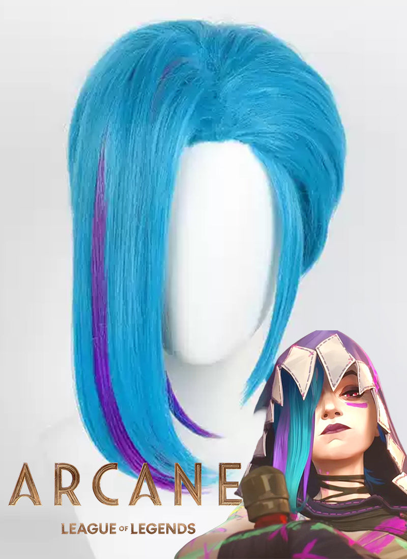 League of Legends LOL Arcane Jinx Blue Mixed Purple Cosplay Wig TB1710