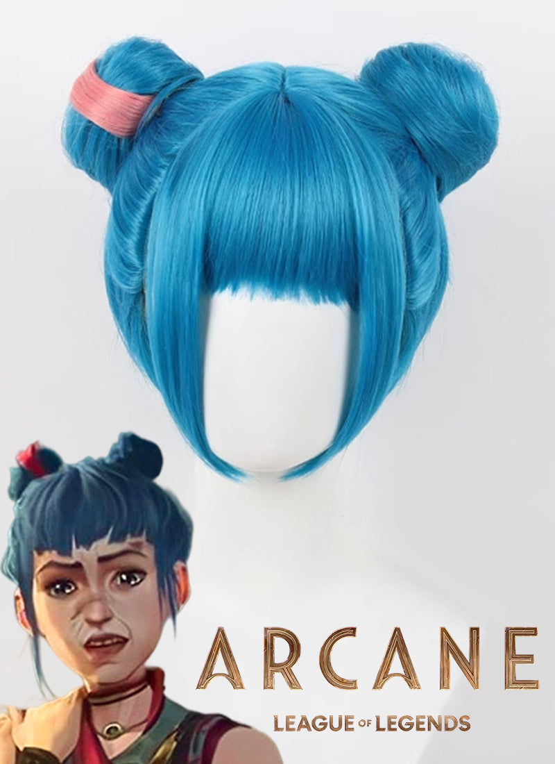 League of Legends LOL Arcane Jinx Powder Blue Double Bun Cosplay Wig TB1719