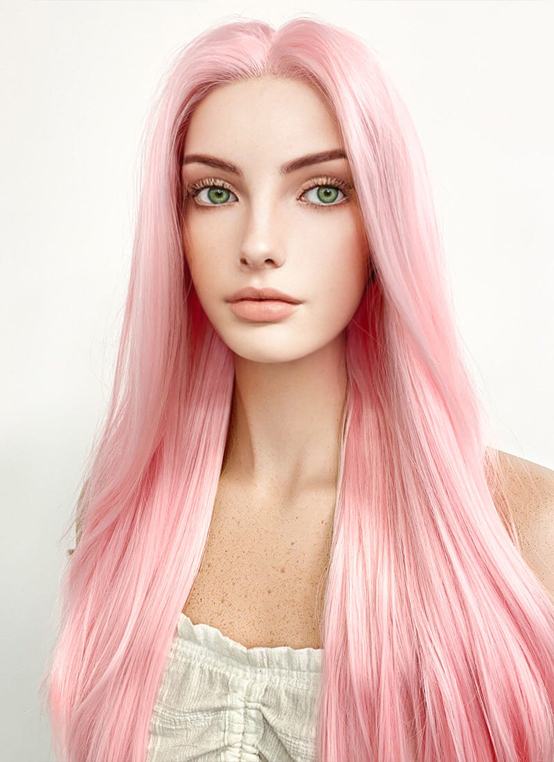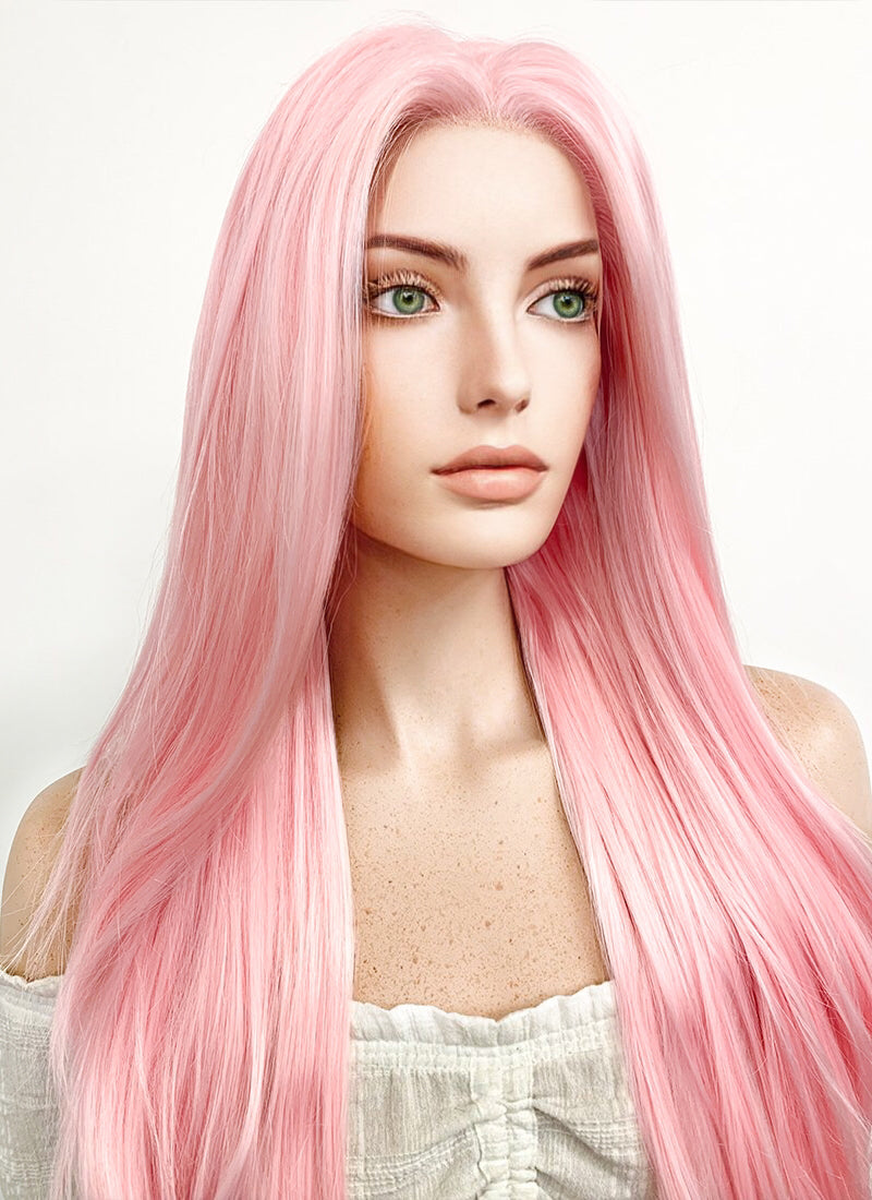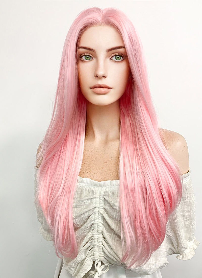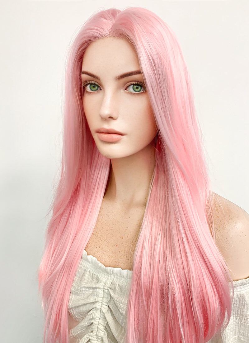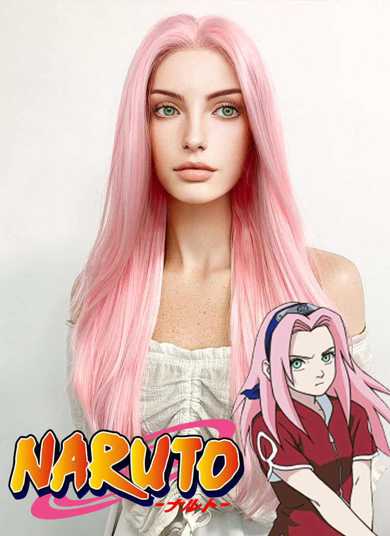 Naruto Haruno Sakura Long Straight Pink Pastel Lace Front Synthetic Hair Wig LF026A