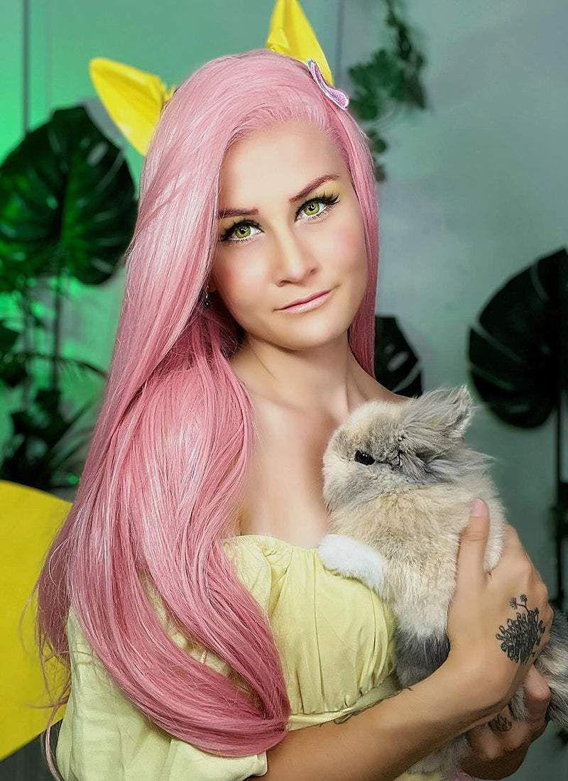 My Little Pony Fluttershy Long Straight Pastel Pink Lace Front Synthetic Wig LW238B