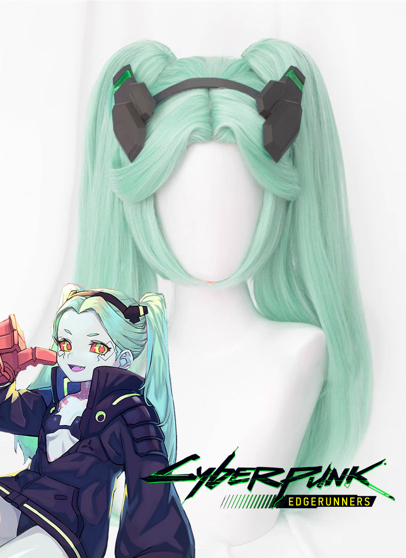 Cyberpunk Edgerunners Rebecca Straight Green Cosplay Wig + Ponytails TB1651