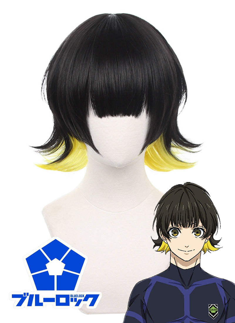 Blue Lock Bachira Meguru Short Black With Yellow Cosplay Wig TB1689