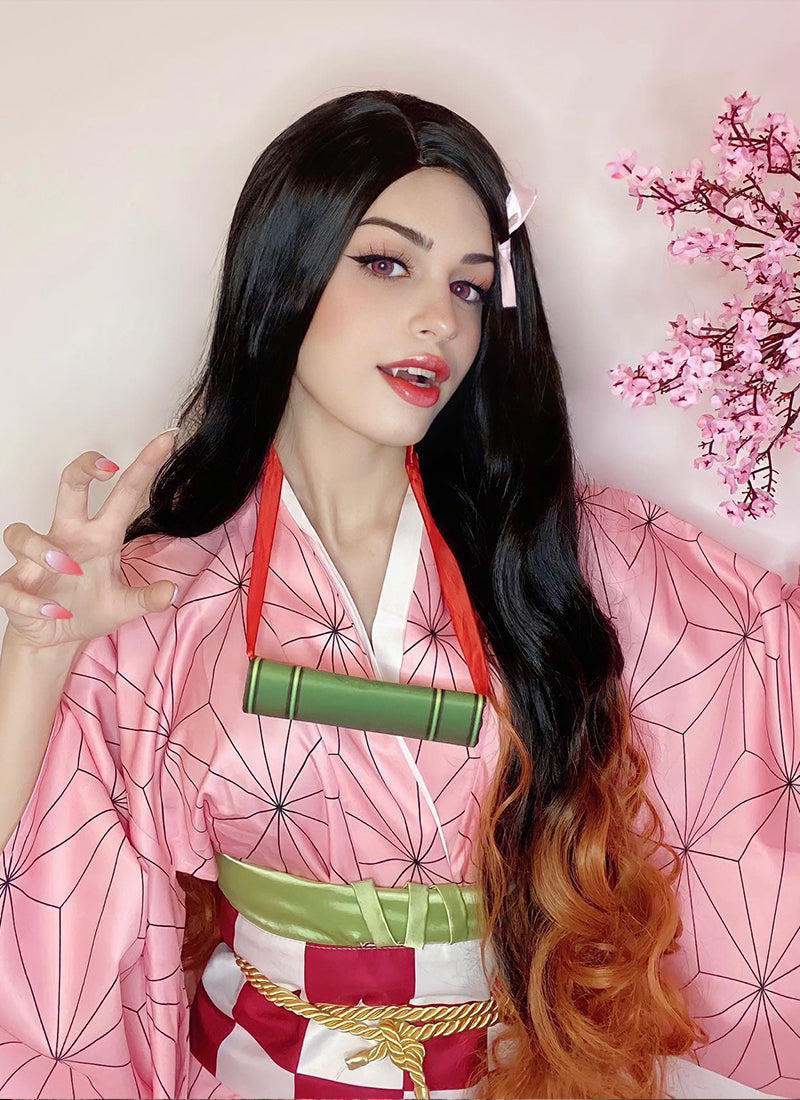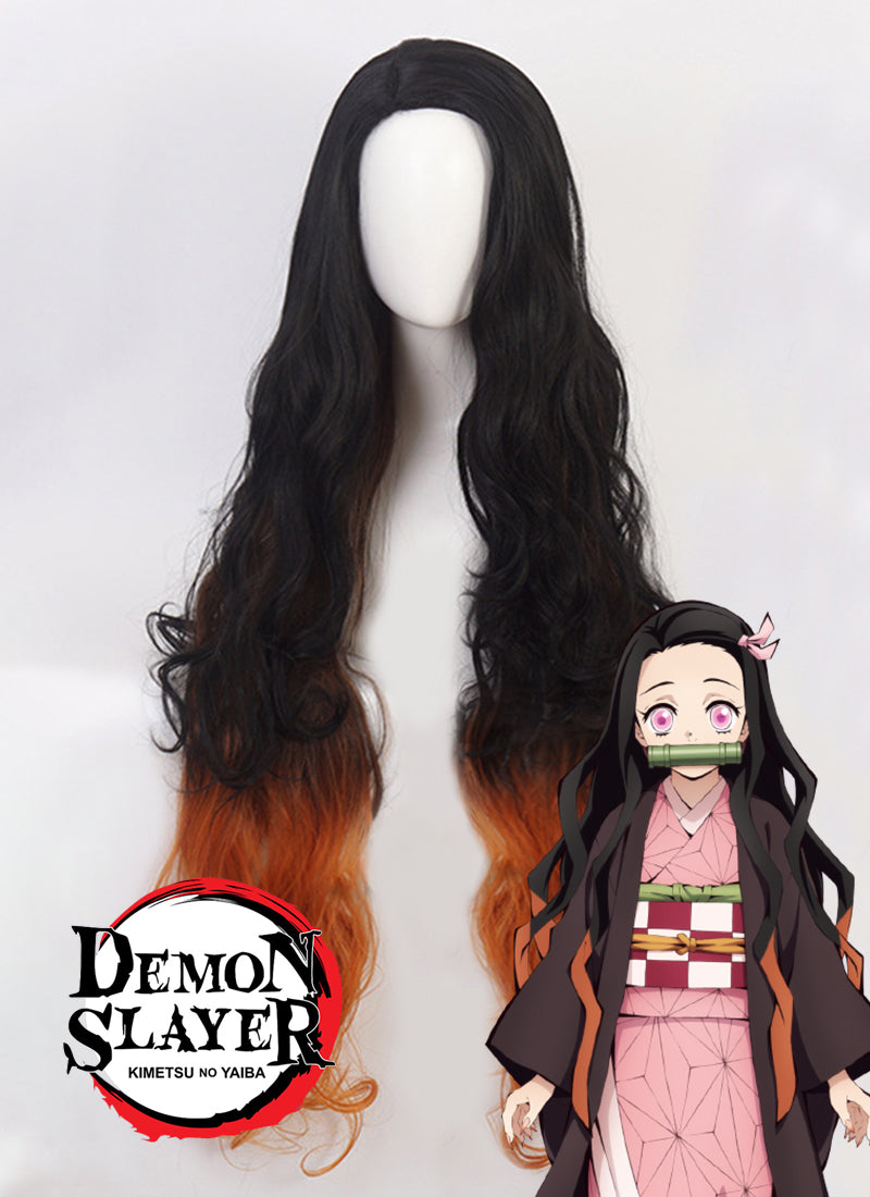 Demon Slayer: Kimetsu No Yaiba Kamado Nezuko Long Black With Orange Cosplay Wig TBZ1161