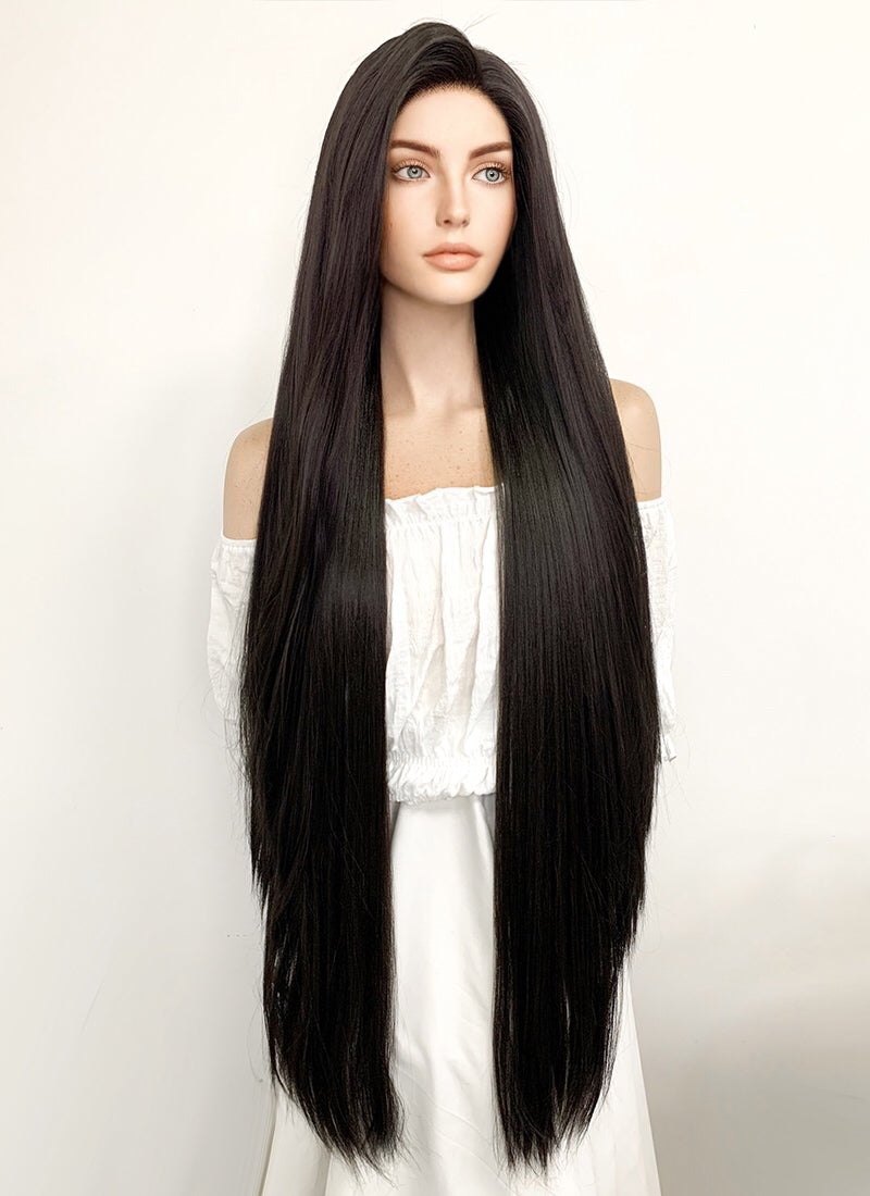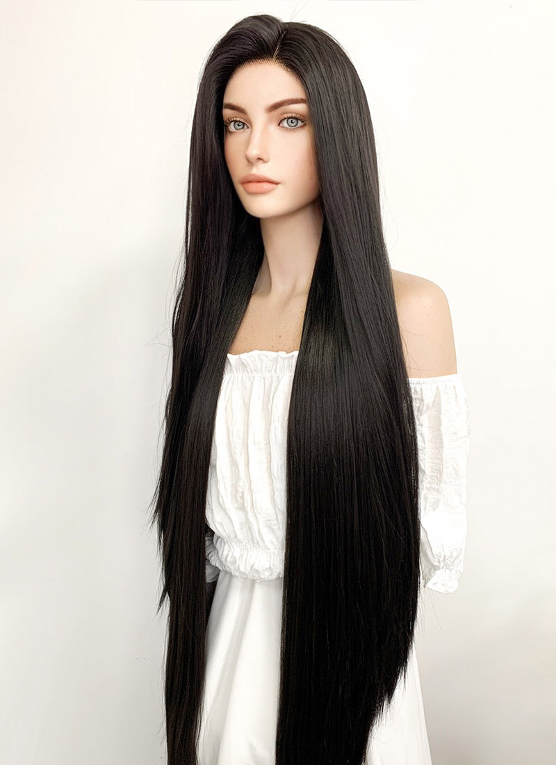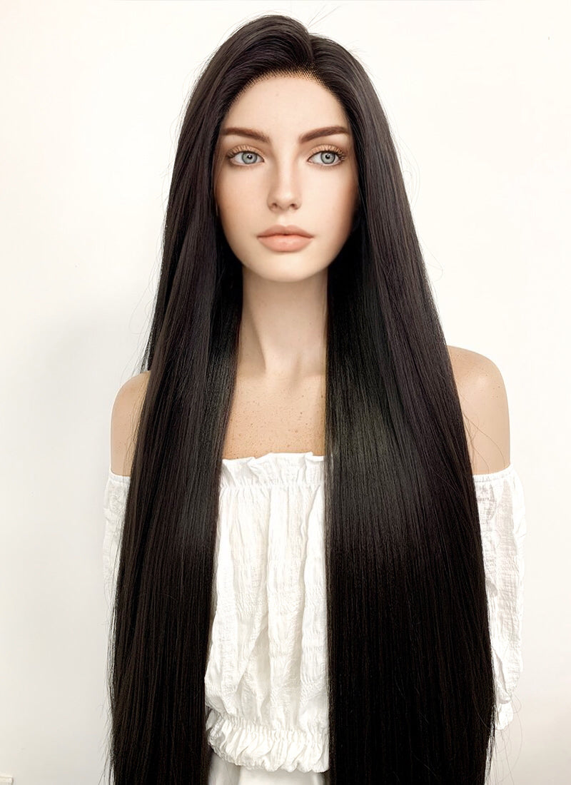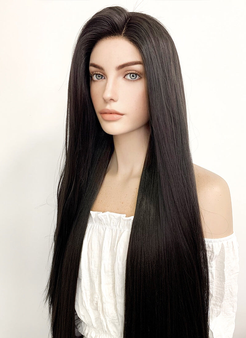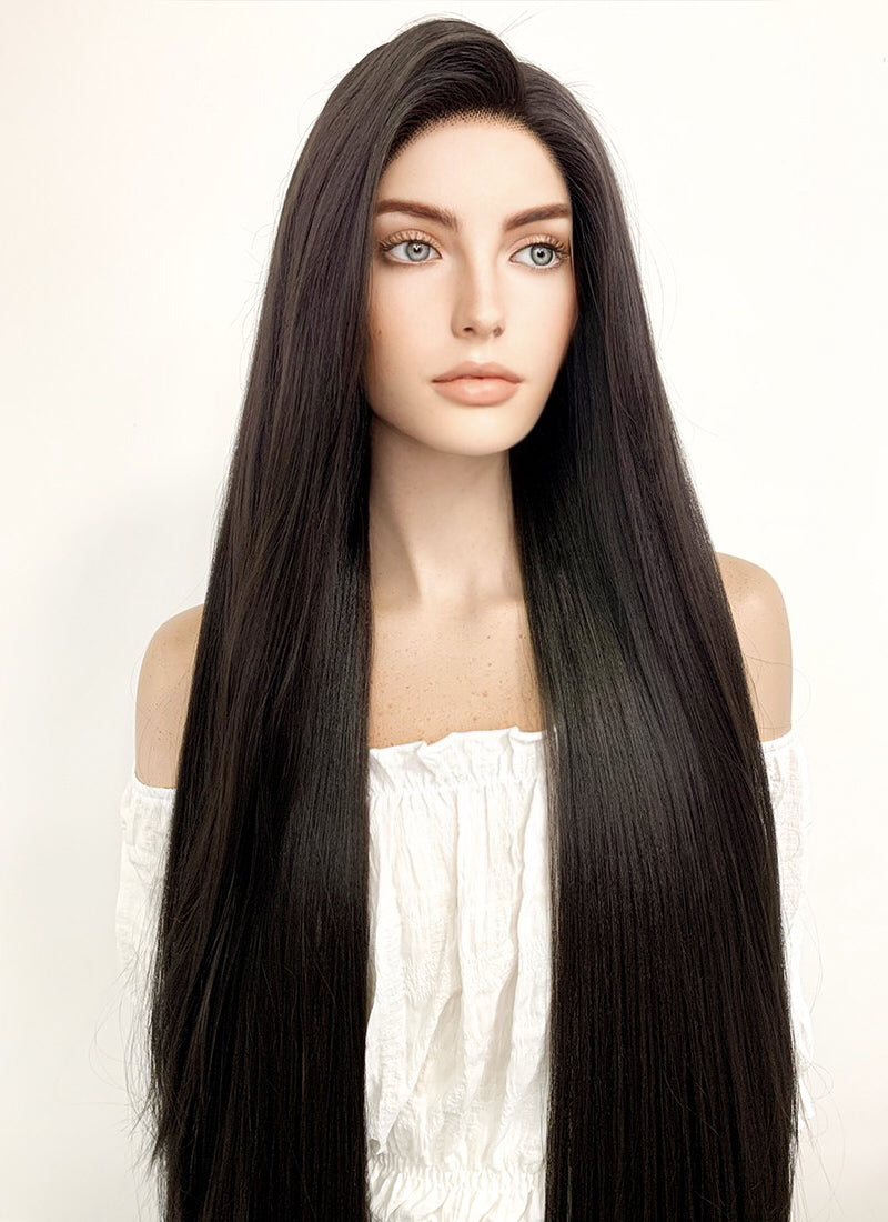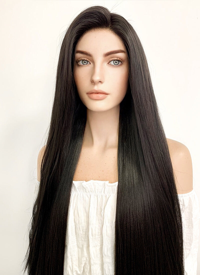 Long Straight Yaki Natural Black Lace Front Synthetic Hair Wig LF701A