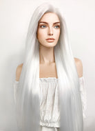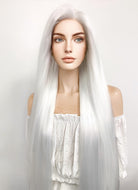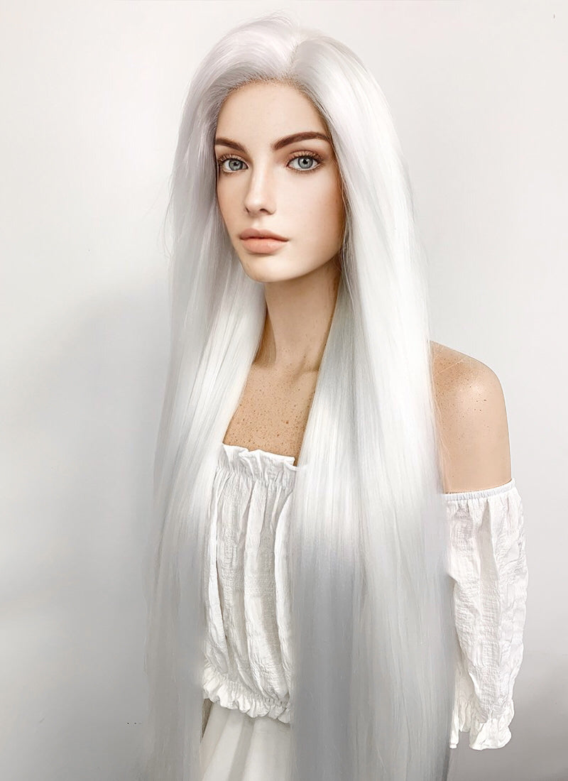 Long Straight Yaki White Lace Front Synthetic Hair Wig LF701B