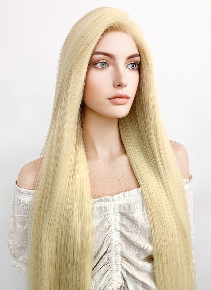 Long Straight Yaki Blonde Lace Front Synthetic Hair Wig LF701E