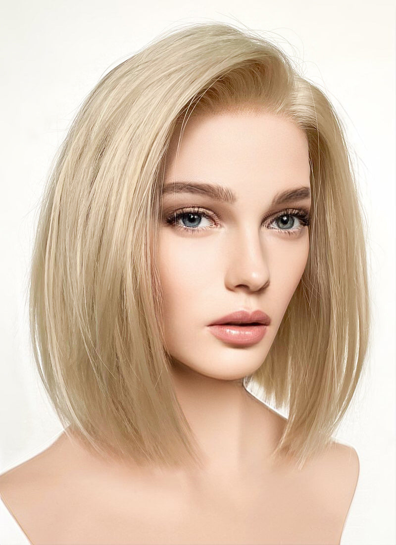 Short Straight Bob Blonde Lace Front Synthetic Hair Wig LFK5542
