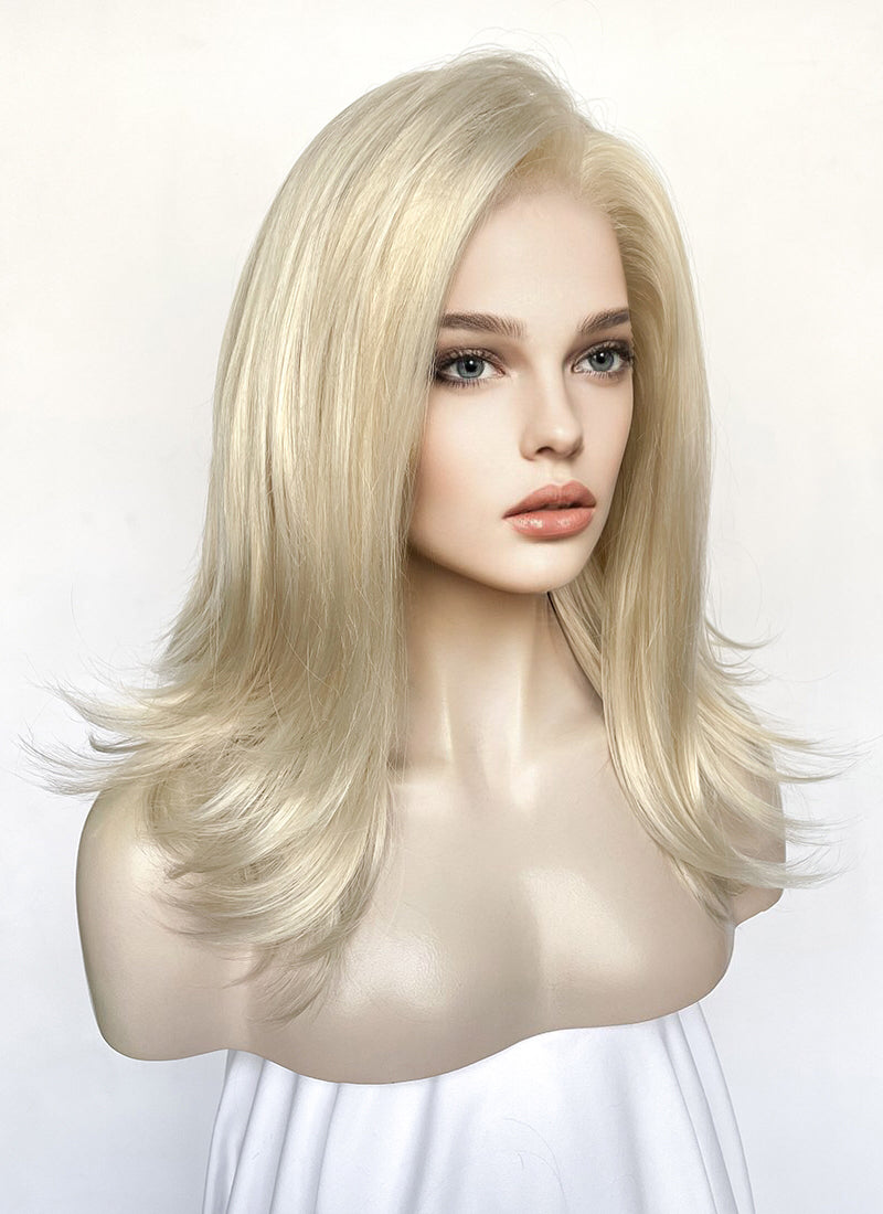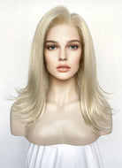 Medium Straight Pastel Ash Blonde Lace Front Synthetic Hair Wig LW4029