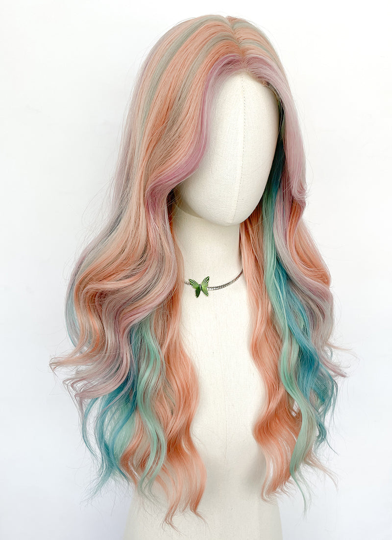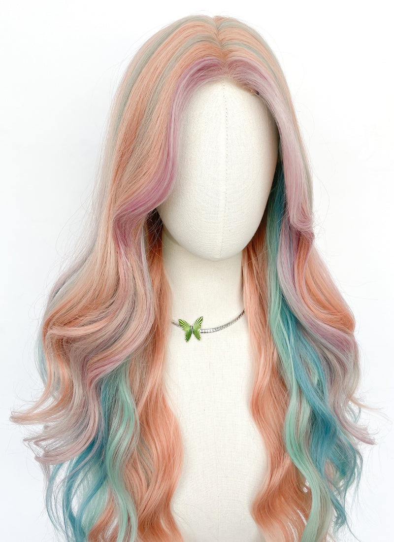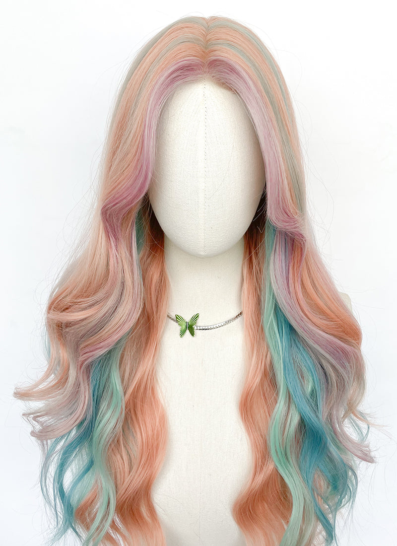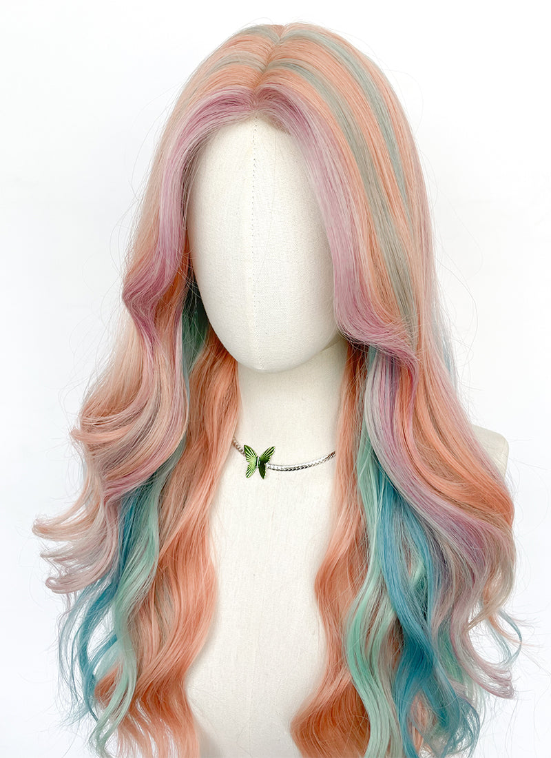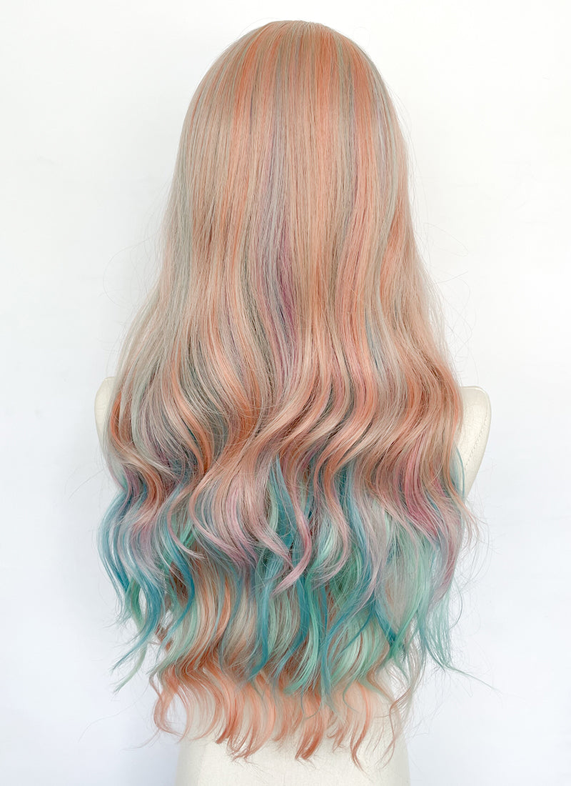 Long Wavy Pink Rainbow Color Synthetic Wig NL087