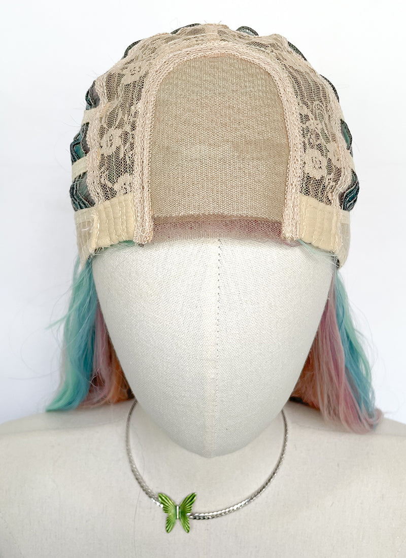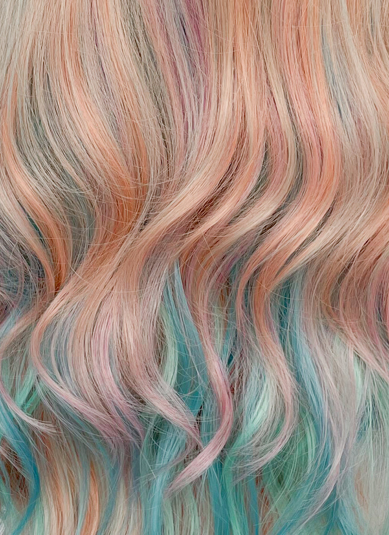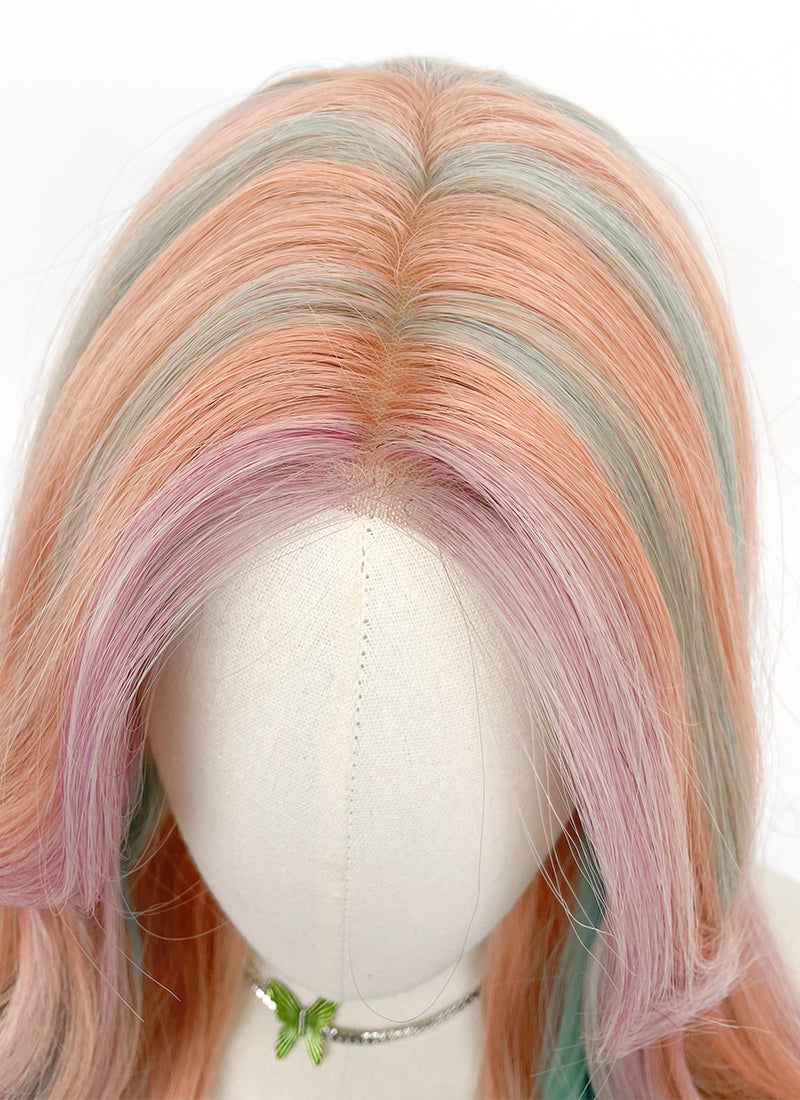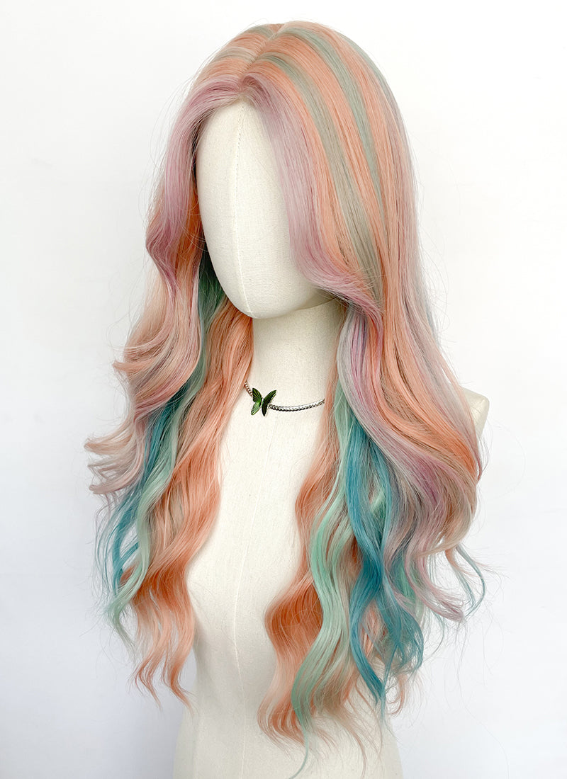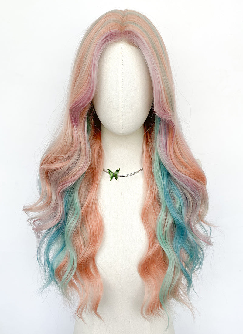Long Wavy Pink Rainbow Color Synthetic Wig NL087