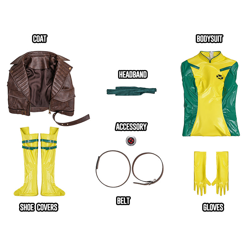 Including: Coat, Headband, Bodysuit, Shoe Covers, Accessory, Belt, Gloves