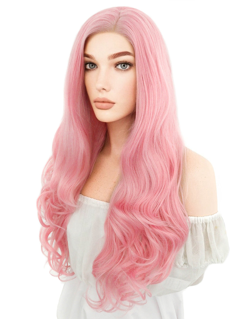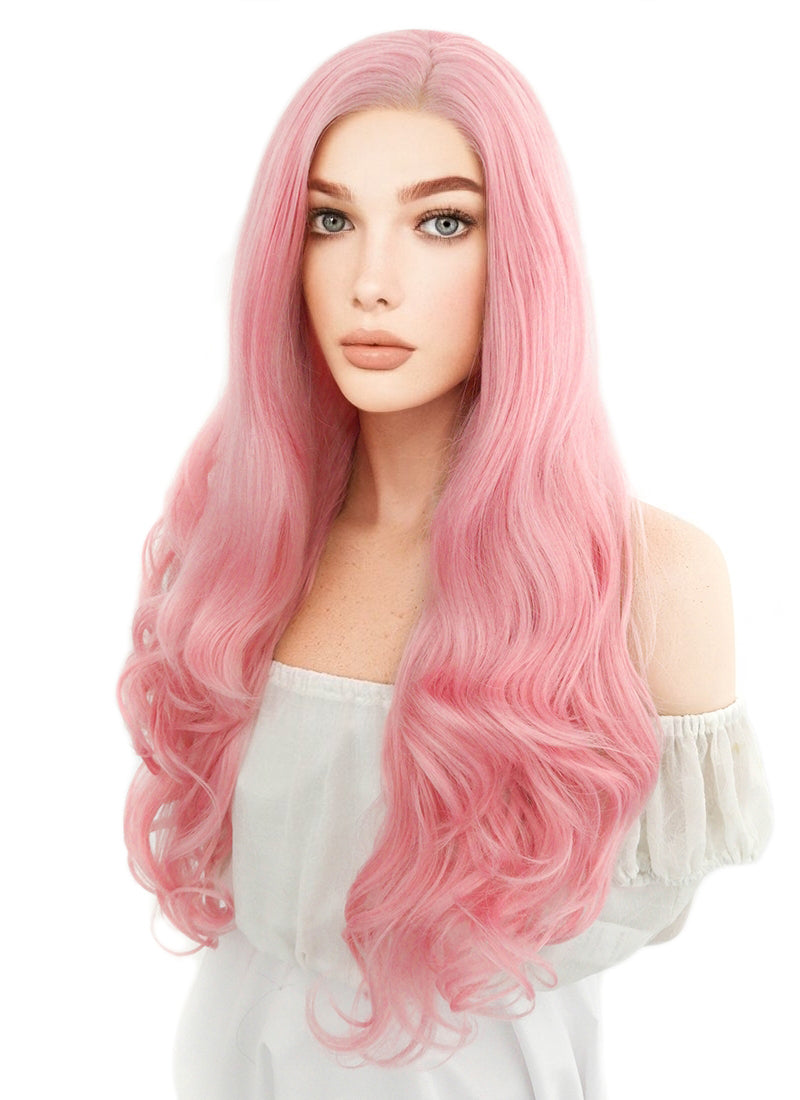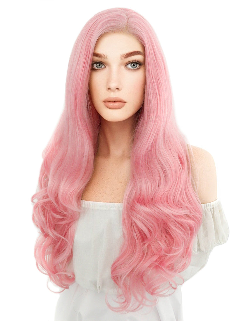 Long Wavy Pink Lace Front Synthetic Hair Wig LF084