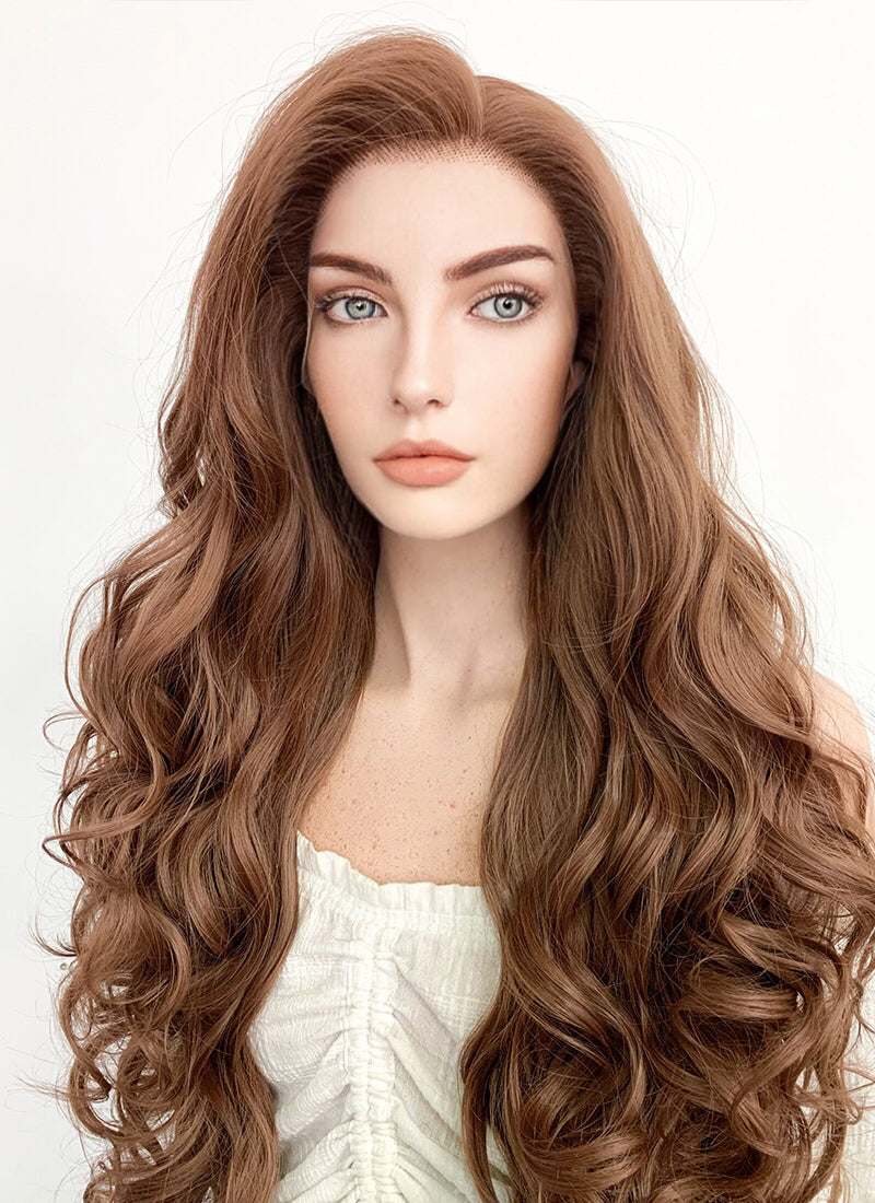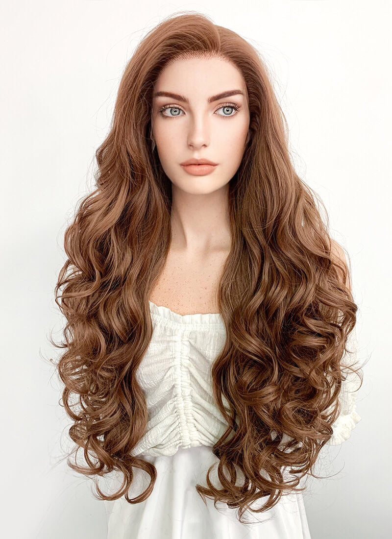 Long Curly Chestnut Brown Lace Front Synthetic Hair Wig LF667J