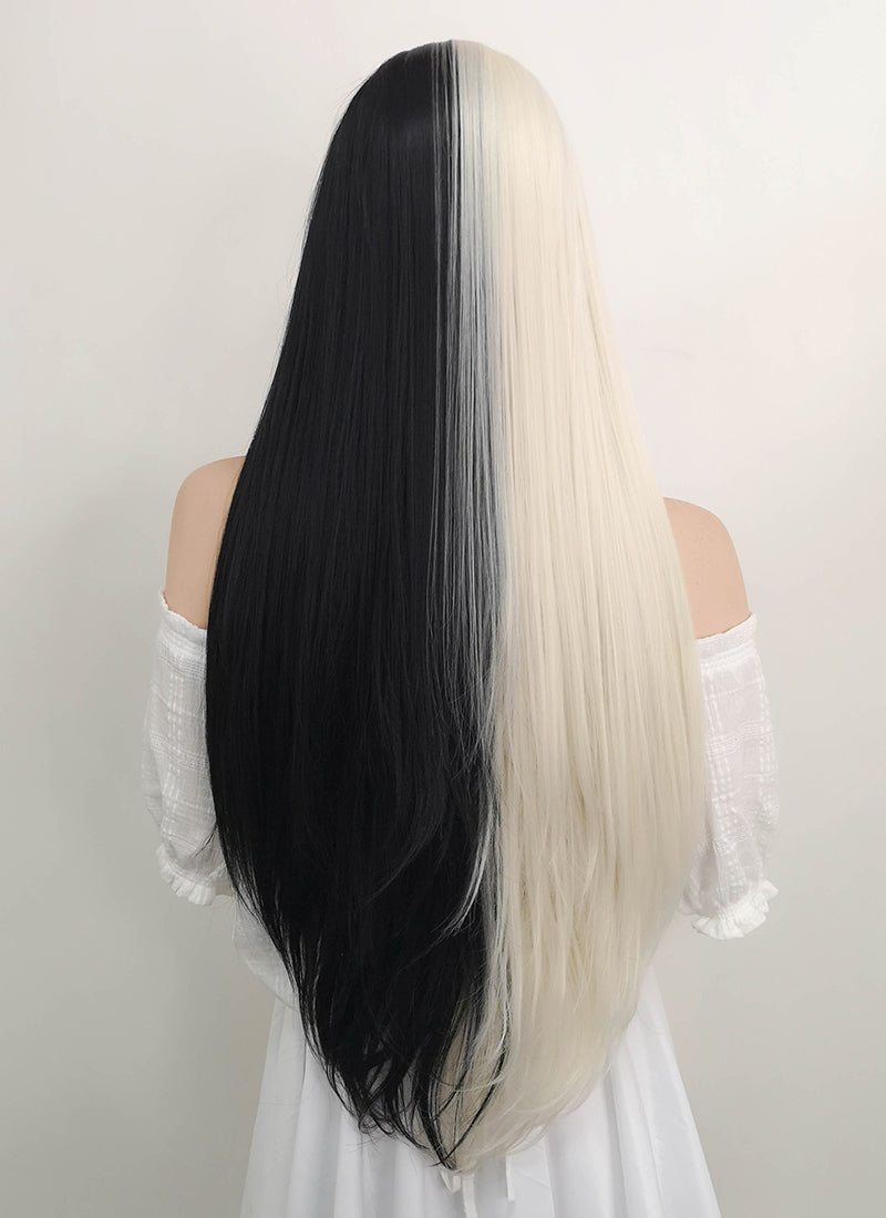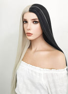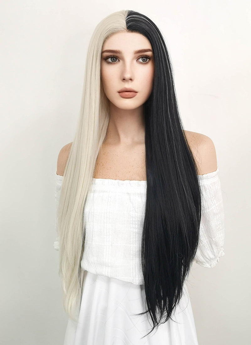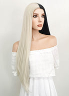 Long Straight Light Blonde Mixed Black Lace Front Synthetic Hair Wig LW1531