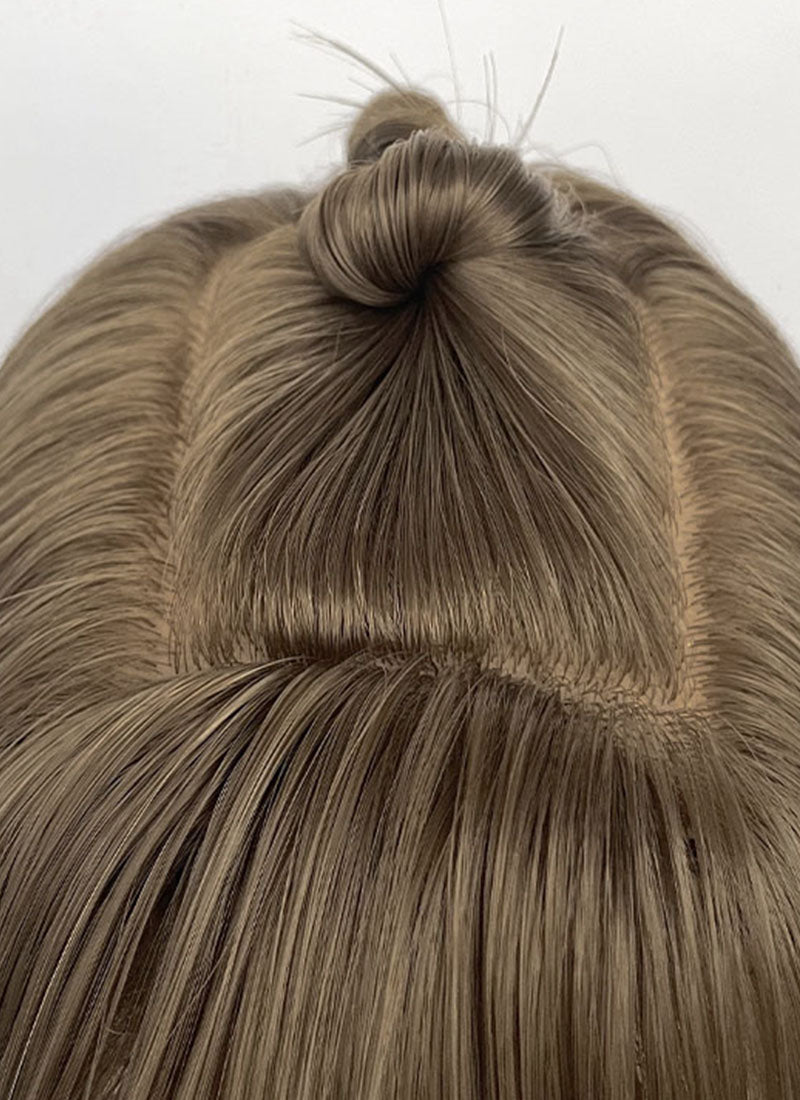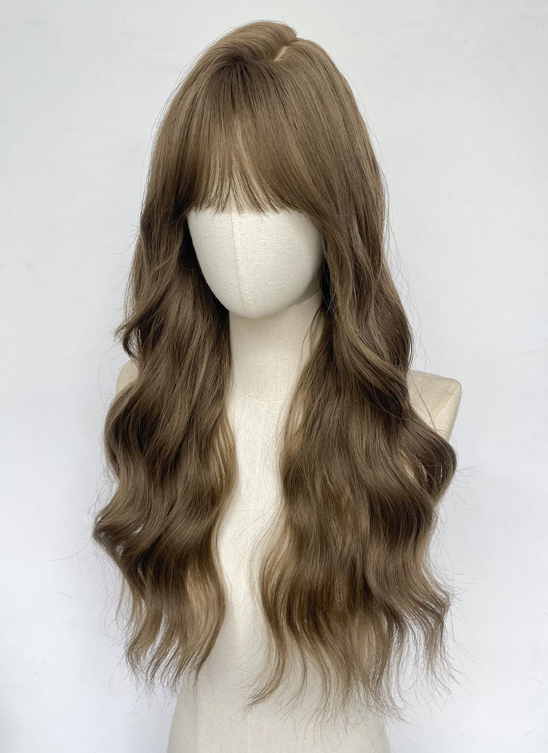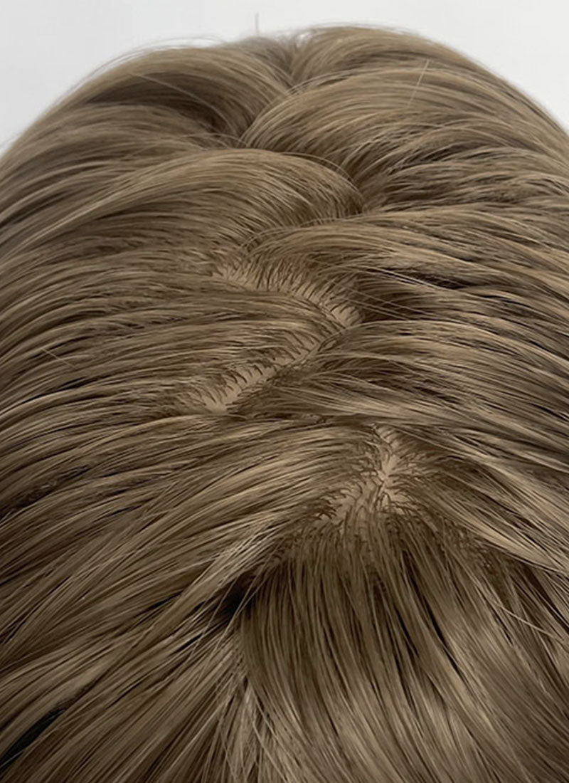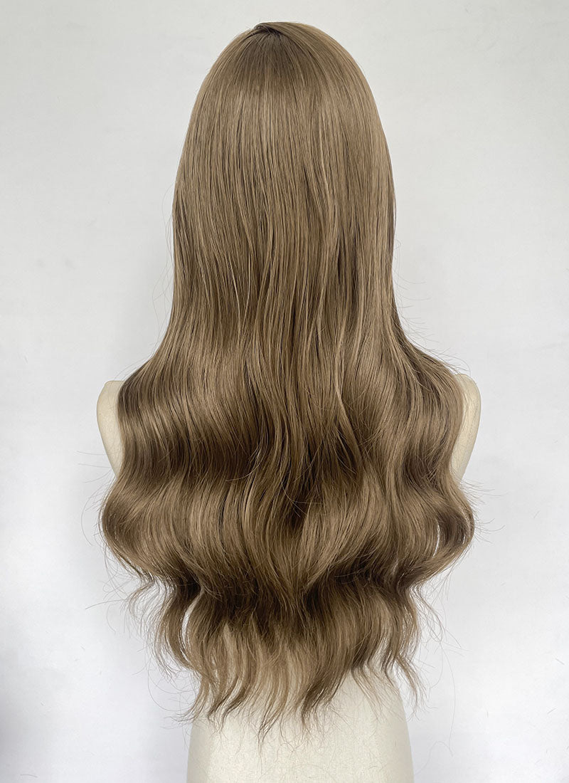 5x4 Large Fake Scalp Light Brown Wavy Synthetic Hair Wig NS605