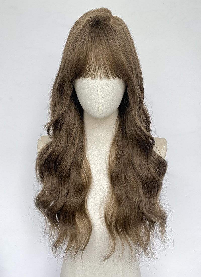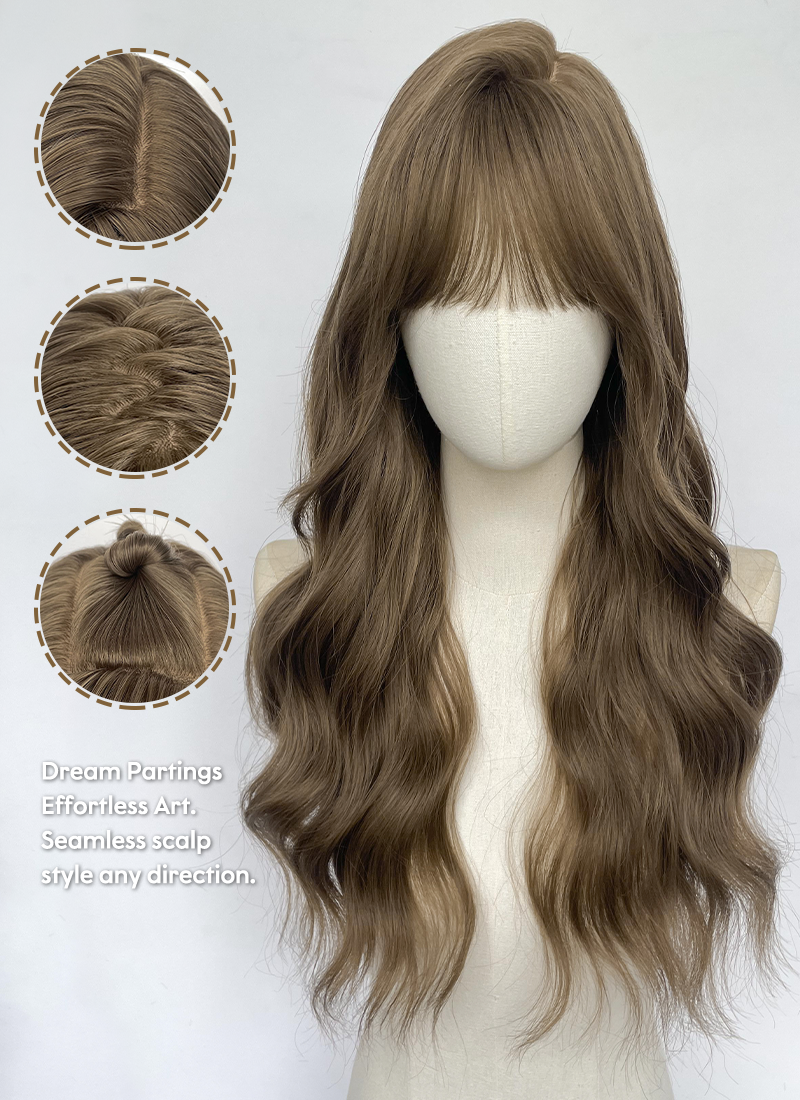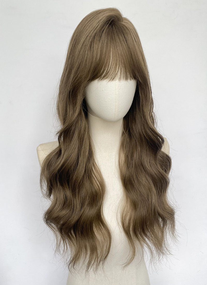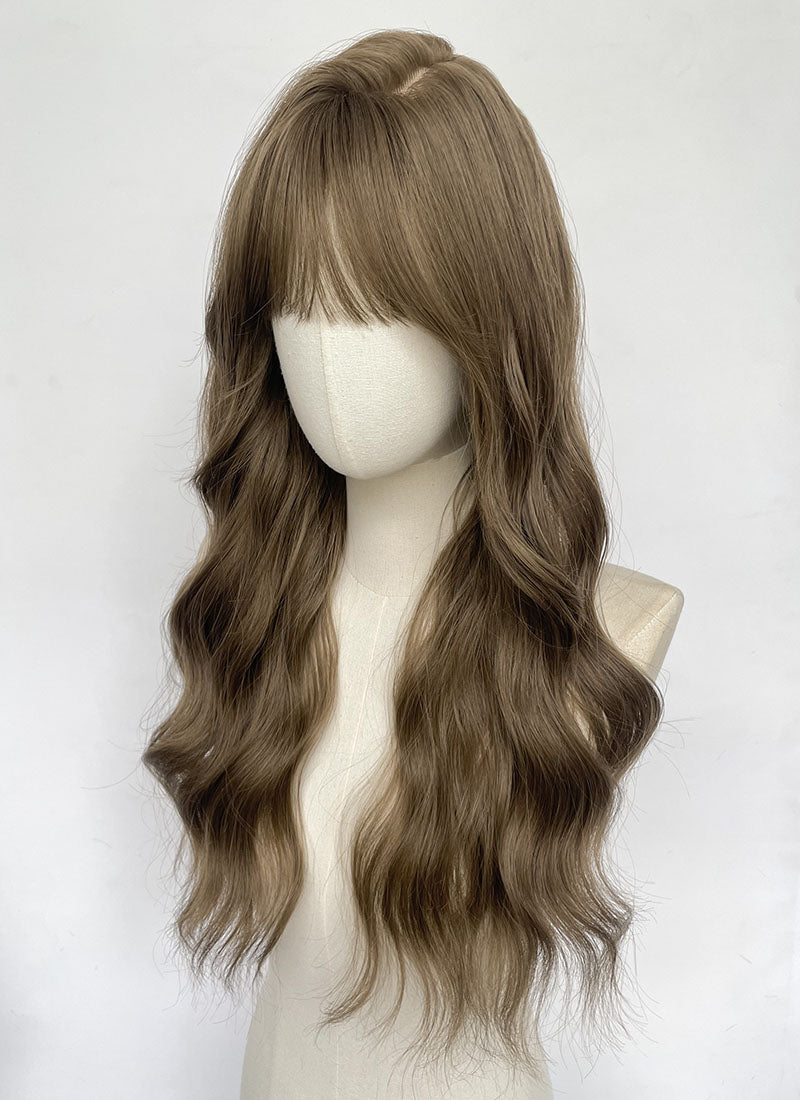 5x4 Large Fake Scalp Light Brown Wavy Synthetic Hair Wig NS605