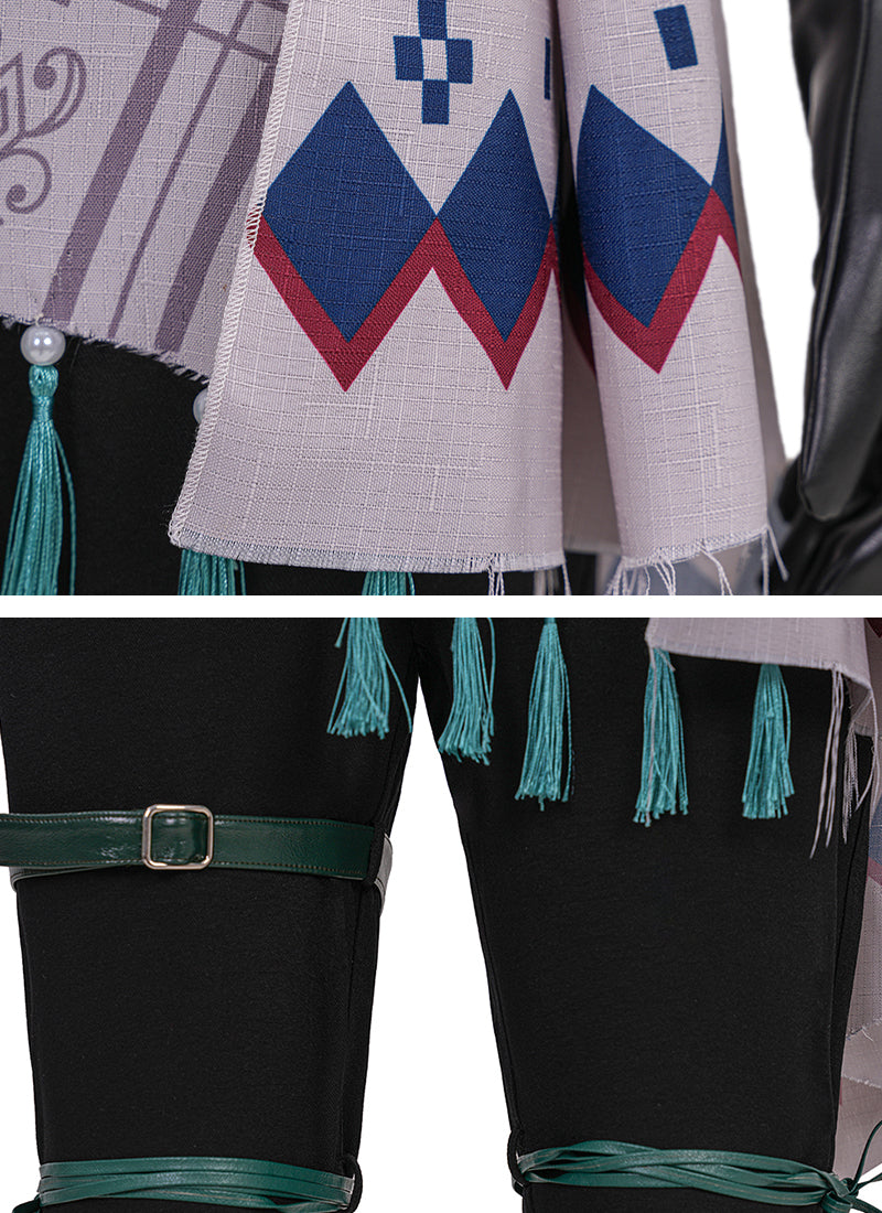 Including: Top, Cape, Pants, Gaiters, Gloves, Waist Accents, Pauldron, Strap, Sash, Garter