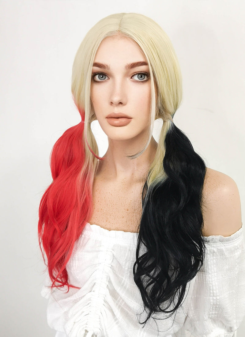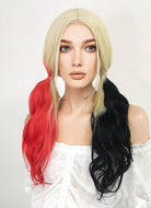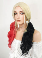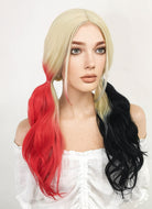 Blonde Harley Quinn Red Black Ponytail Lace Front Synthetic Hair Wig LF1576A