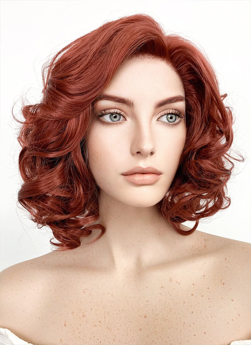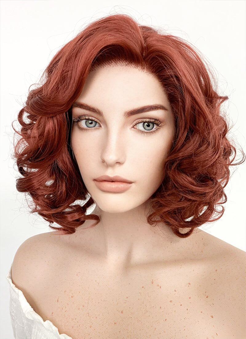 Short Wavy Reddish Brown Lace Front Synthetic Hair Wig LF253
