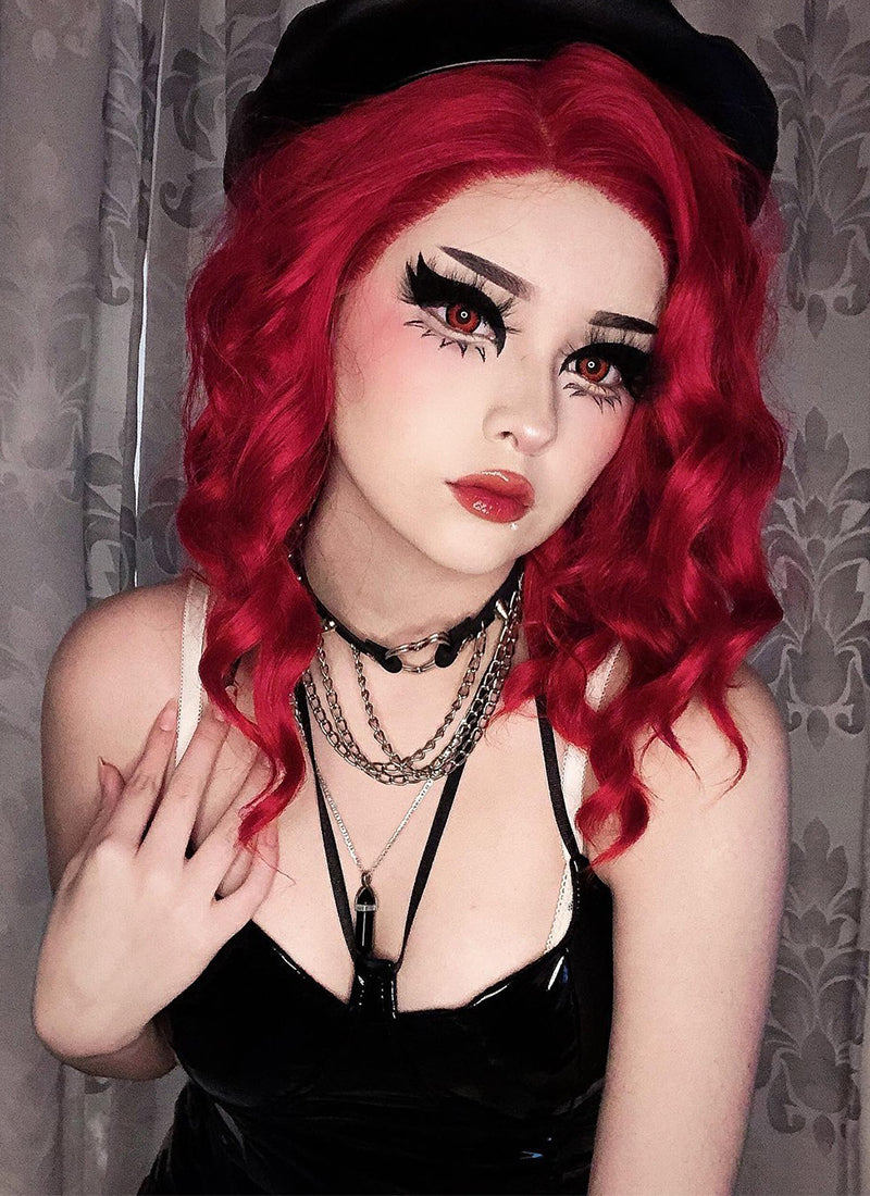 Medium Wavy Bob Red Lace Front Synthetic Hair Wig LF408