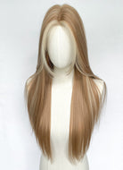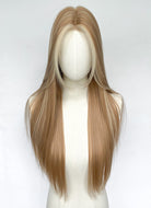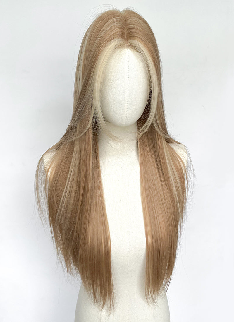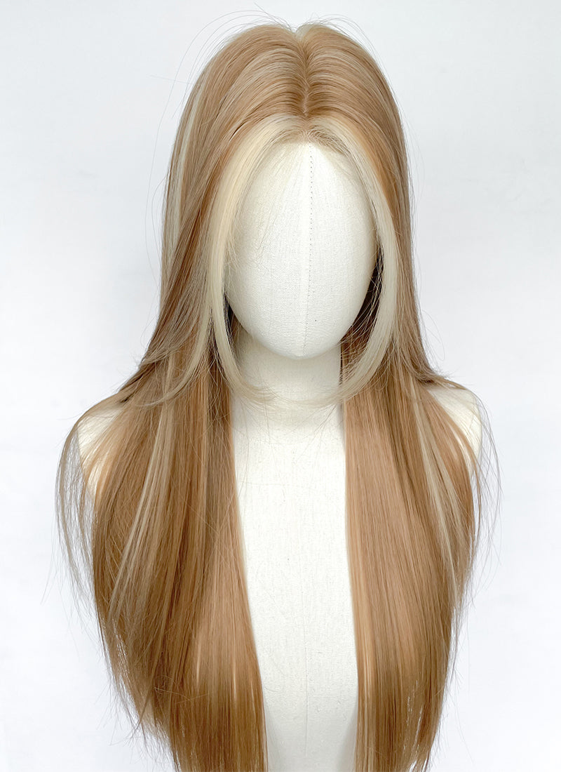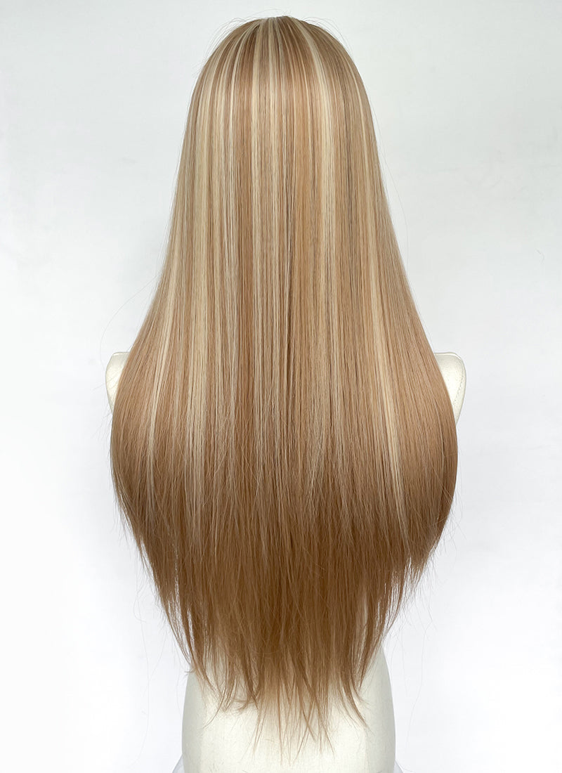 Long Straight Brown Mixed Blonde Highlights Money Piece Synthetic Wig NL081