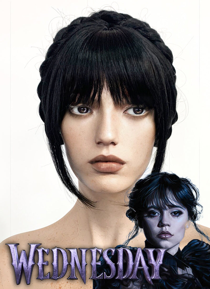 Wednesday Addams Wavy Black Braided Cosplay Wig NS2001