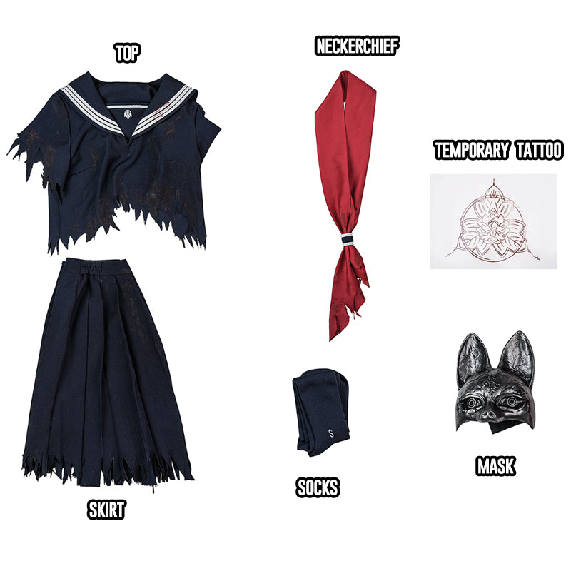 Including: Top, Skirt, Neckerchief, Socks, Temporary Tattoo, Mask