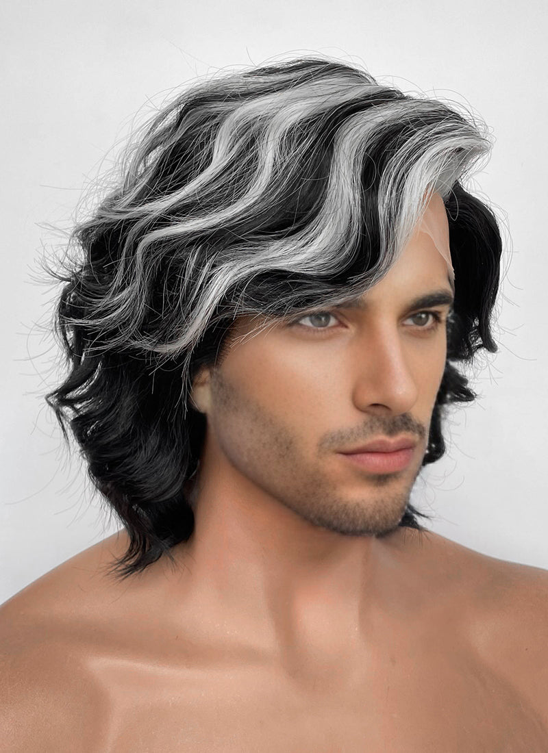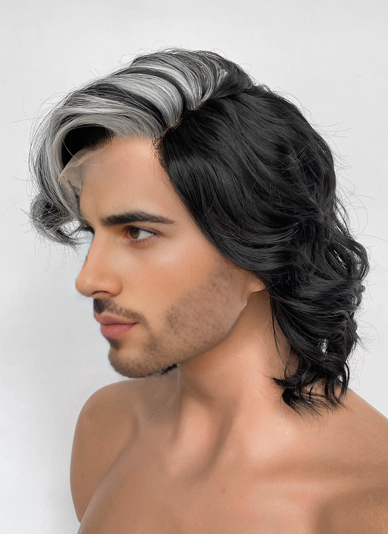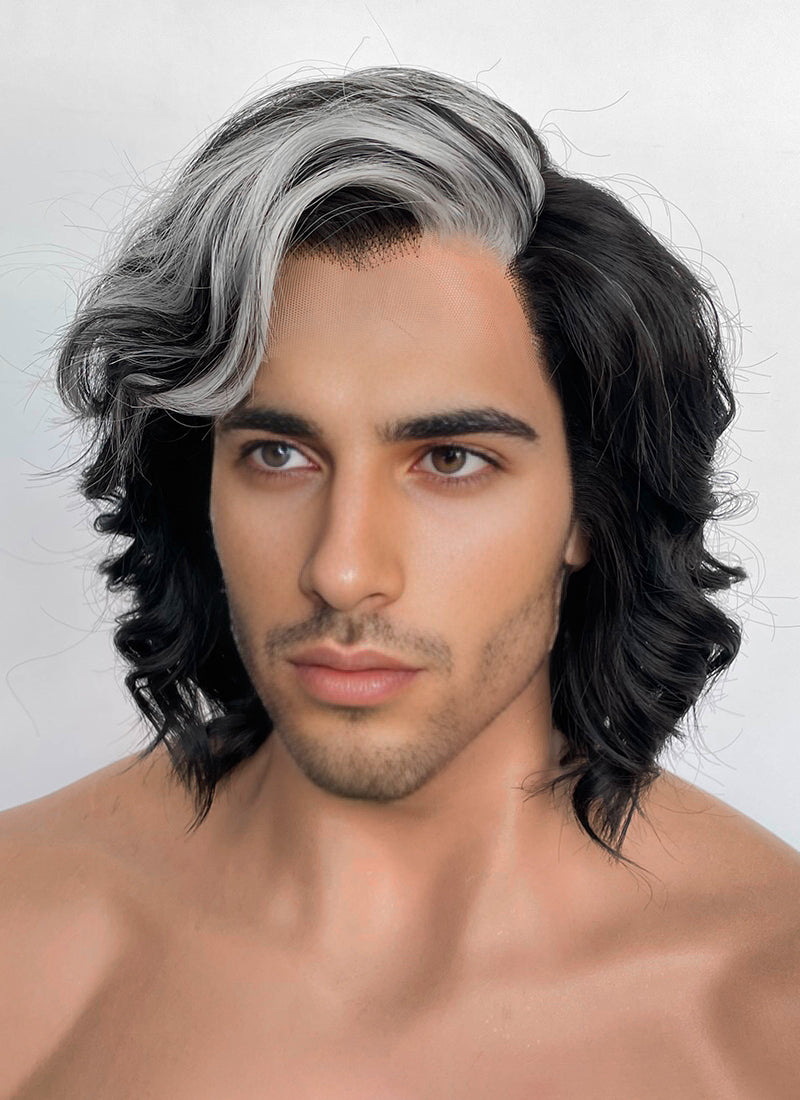 Clair Obscur: Expedition 33 Verso Black Mixed Silver Grey Wavy Lace Front Synthetic Men's Wig LF8067