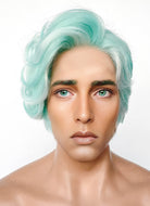 Critical Role Wicander Halovar Pastel Green Mixed White Wavy Lace Front Synthetic Men's Wig LF8103