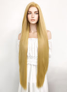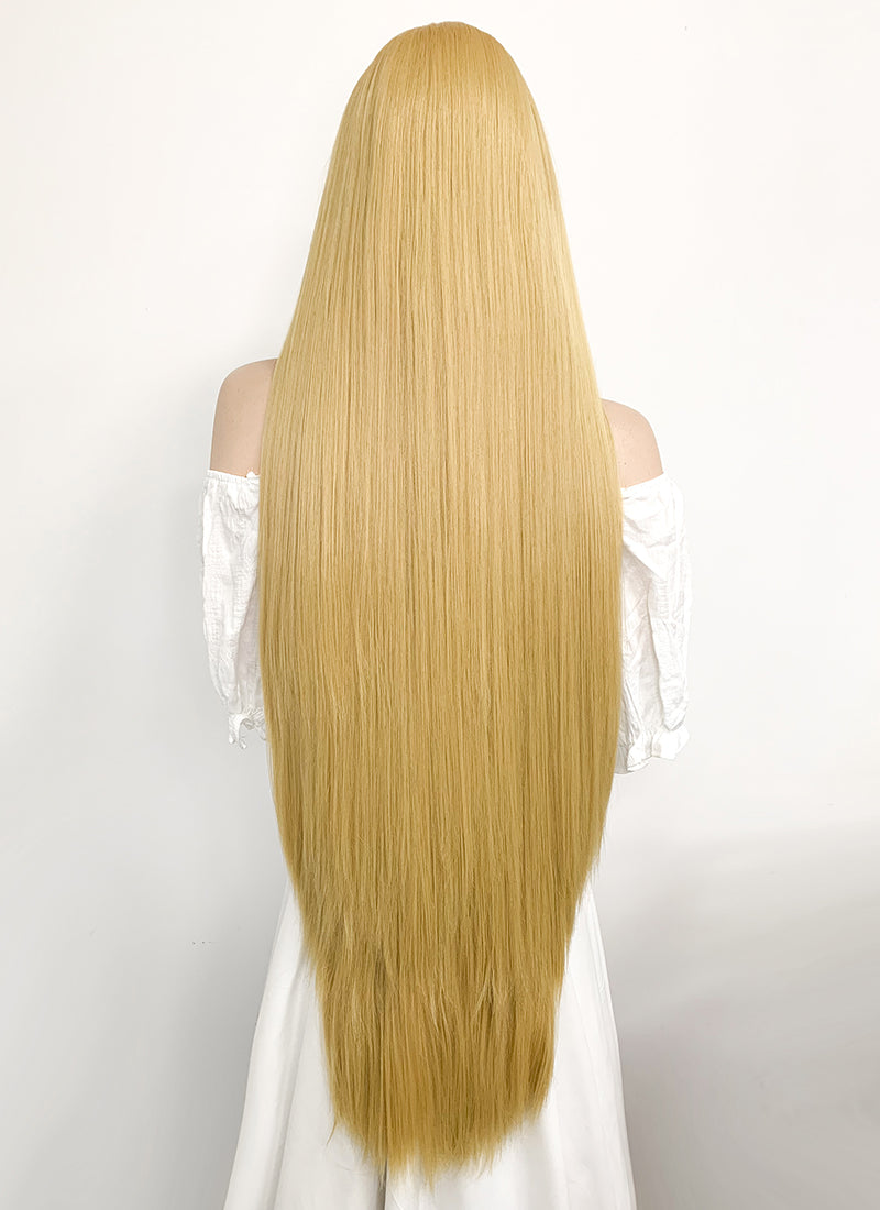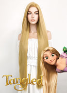 Disney Princess Tangled Rapunzel Long Straight Yaki Blonde Lace Front Synthetic Hair Wig LF701S