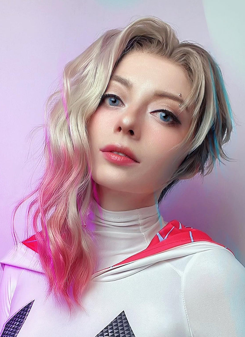Spider-Man: Across the Spider-Verse Gwen Stacy Blonde Pink Ombre With Dark Roots Lace Front Synthetic Wig LFK5548