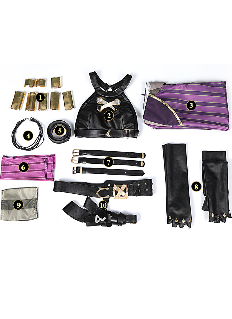 Including: Headpieces + Top + Pants + Necklace + Wristband + Sleeve + Arm Bands + Gloves + Arm Guard + Belt