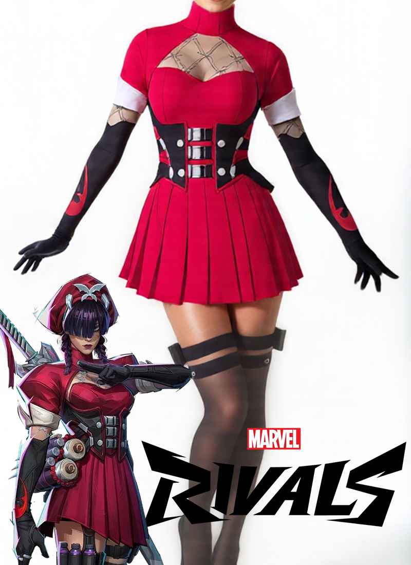 Marvel Rivals Psylocke Crimson Oni Hunter Cosplay Set - Scarlet Combat Dress Roleplay CS829