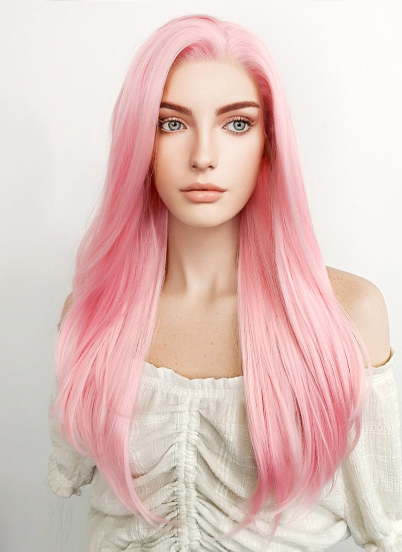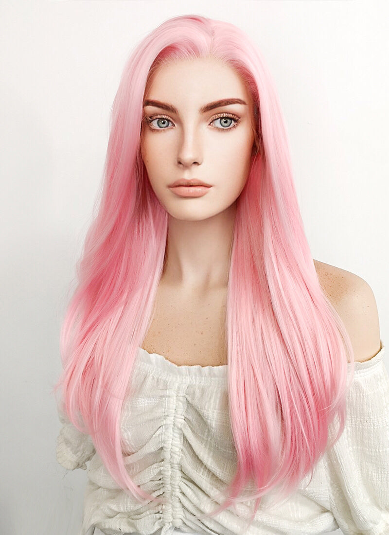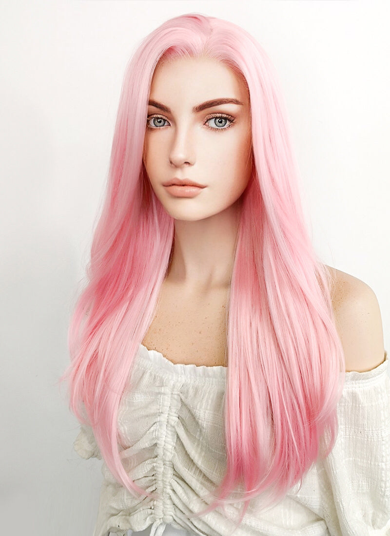 Long Straight Pink Pastel Lace Front Synthetic Hair Wig LF026