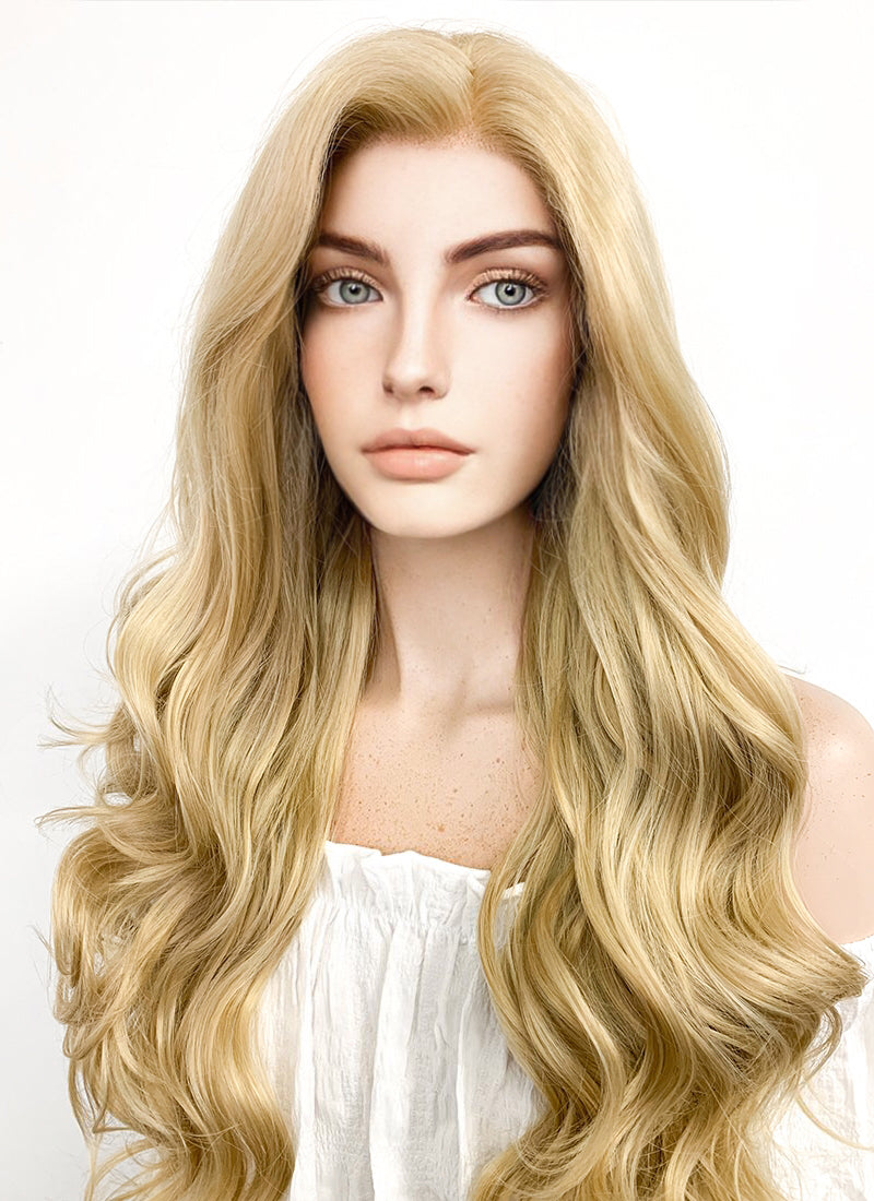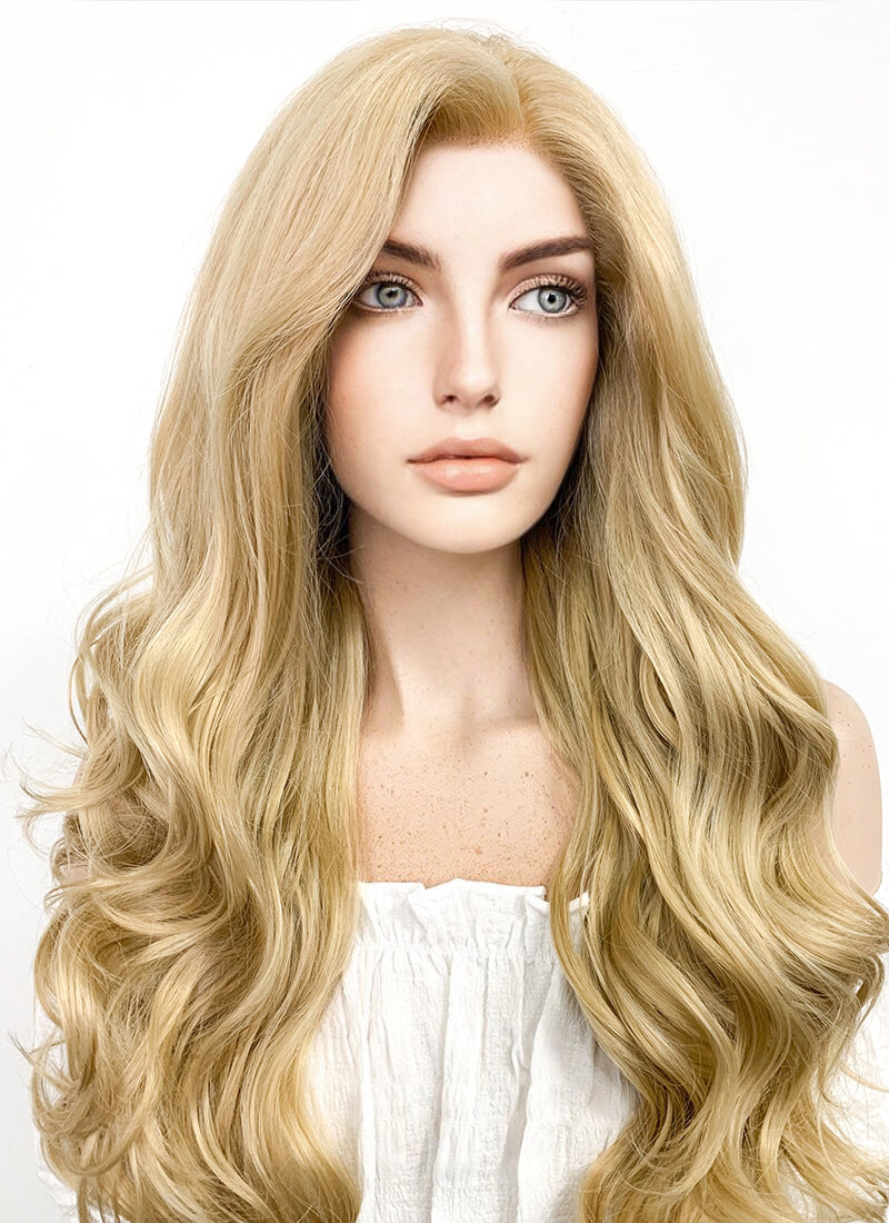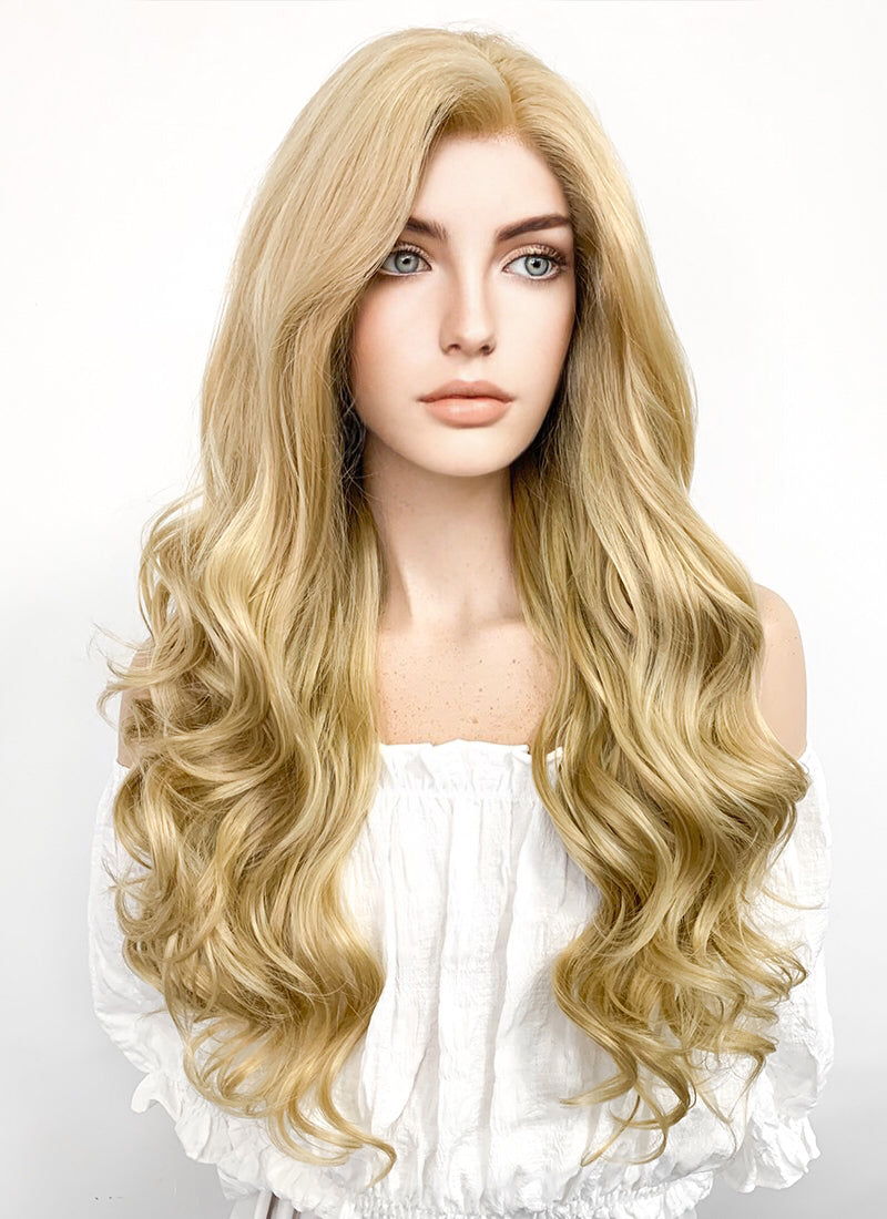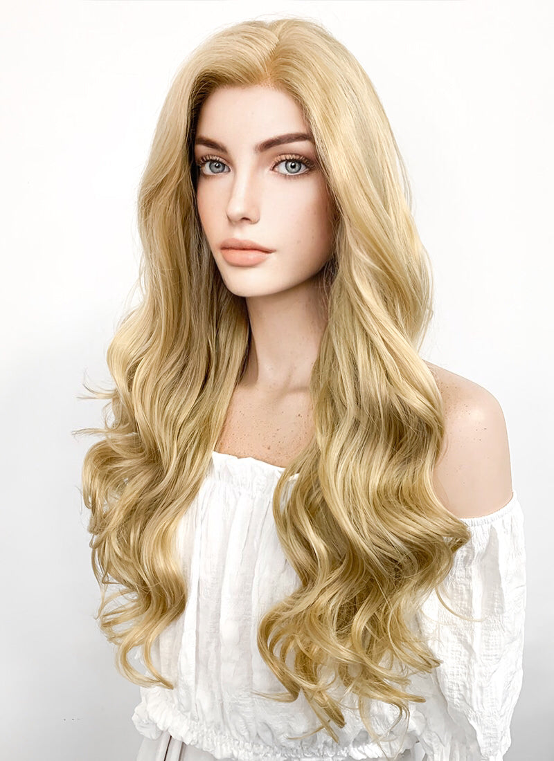 Long Wavy Golden Blonde Lace Front Synthetic Hair Wig LF119