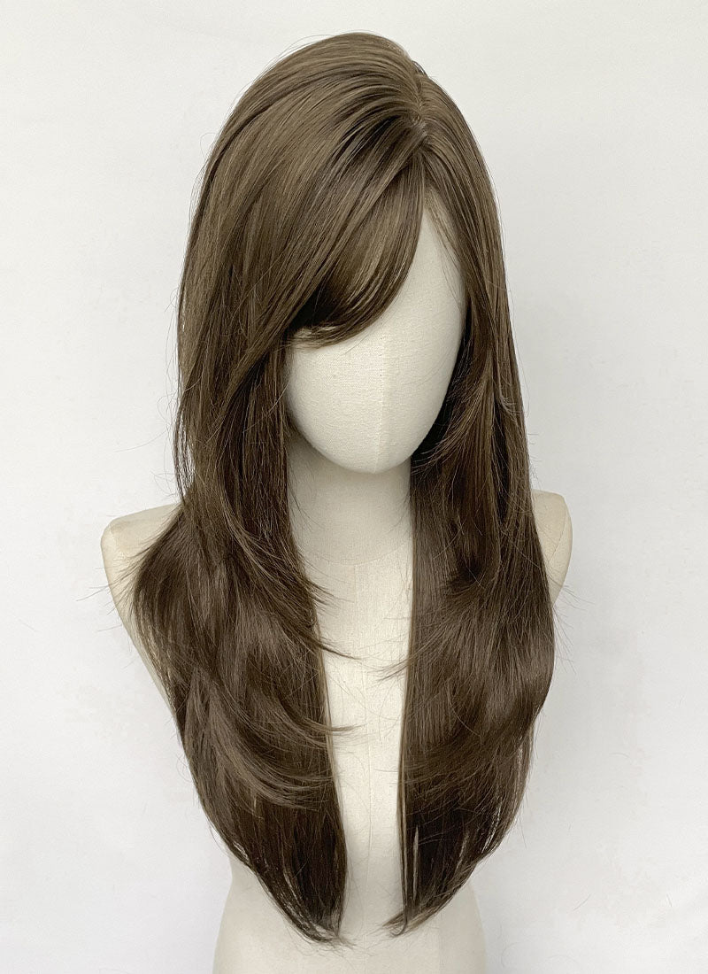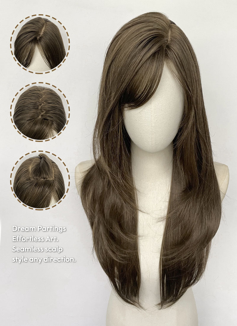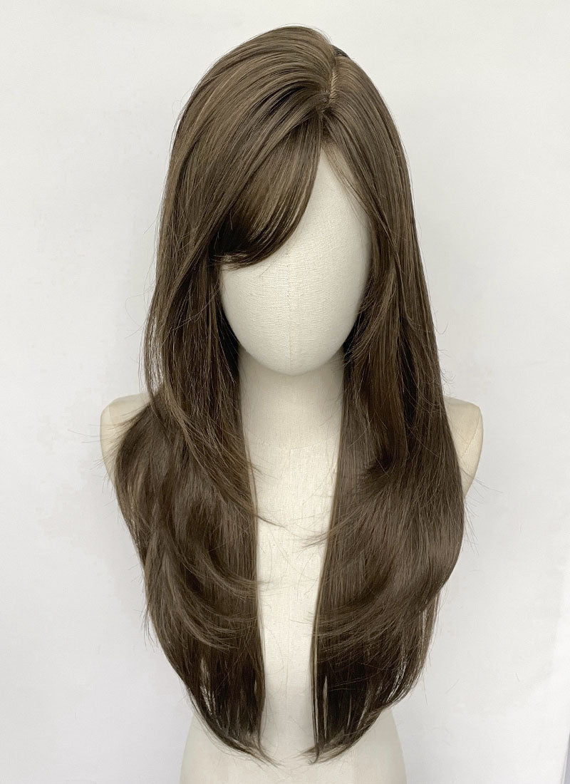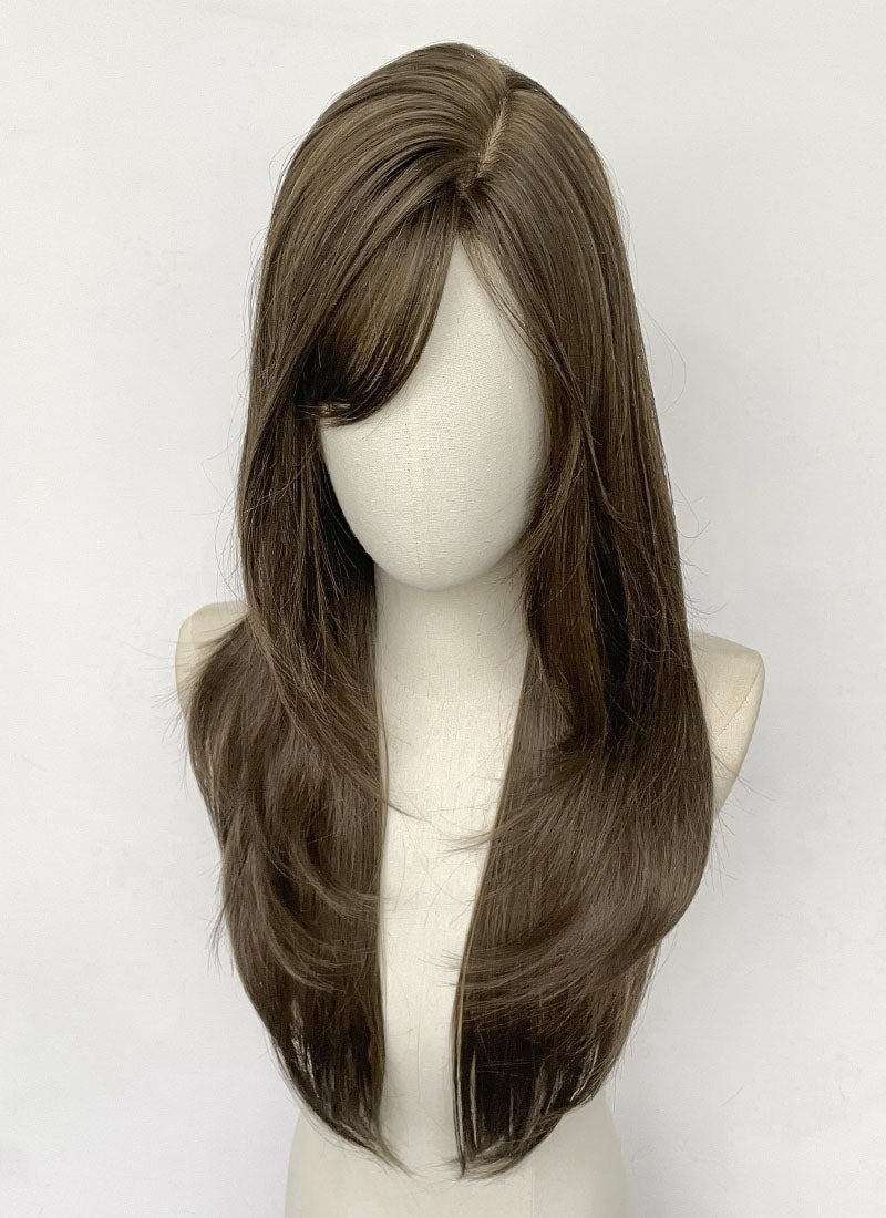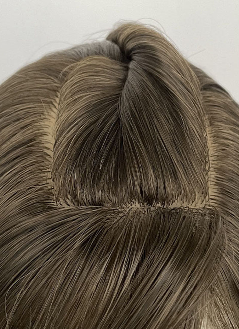 4.5x4 Large Fake Scalp Brunette Straight Layered Hush Cut Synthetic Hair Wig NS602