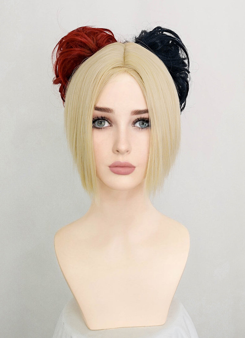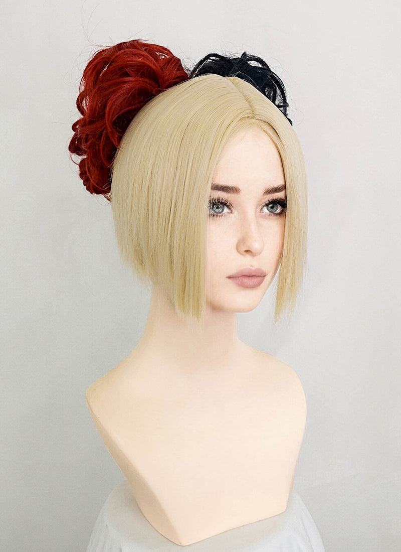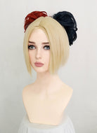 The Suicide Squad 2 Harley Quinn Short Blonde Red Black Ponytail Cosplay Wig ZB249